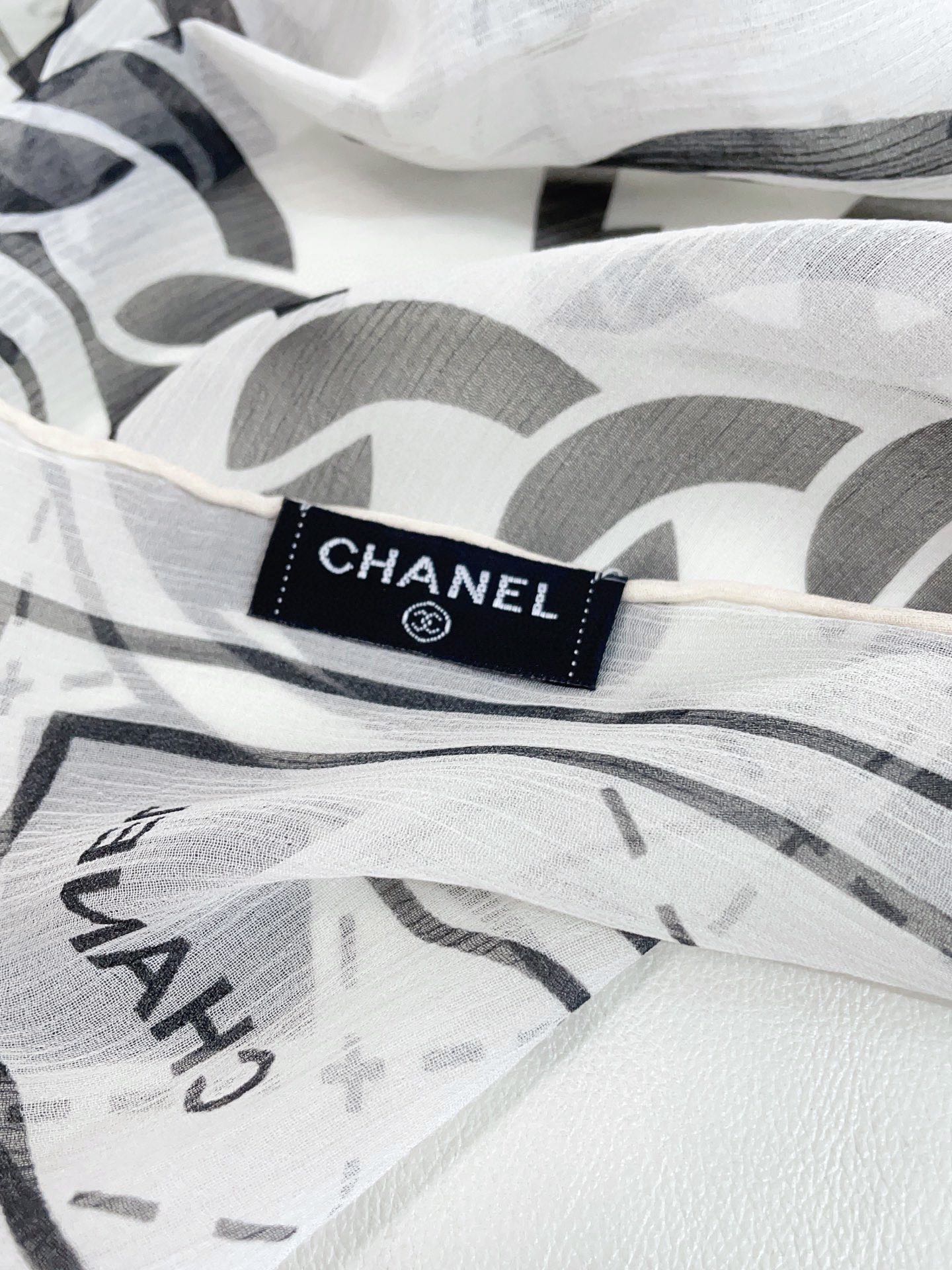 CC Square Scarf 110 CM In White Black Shunyu Qiao Silk 193840