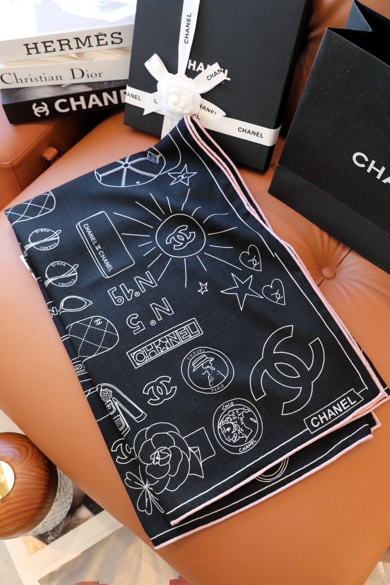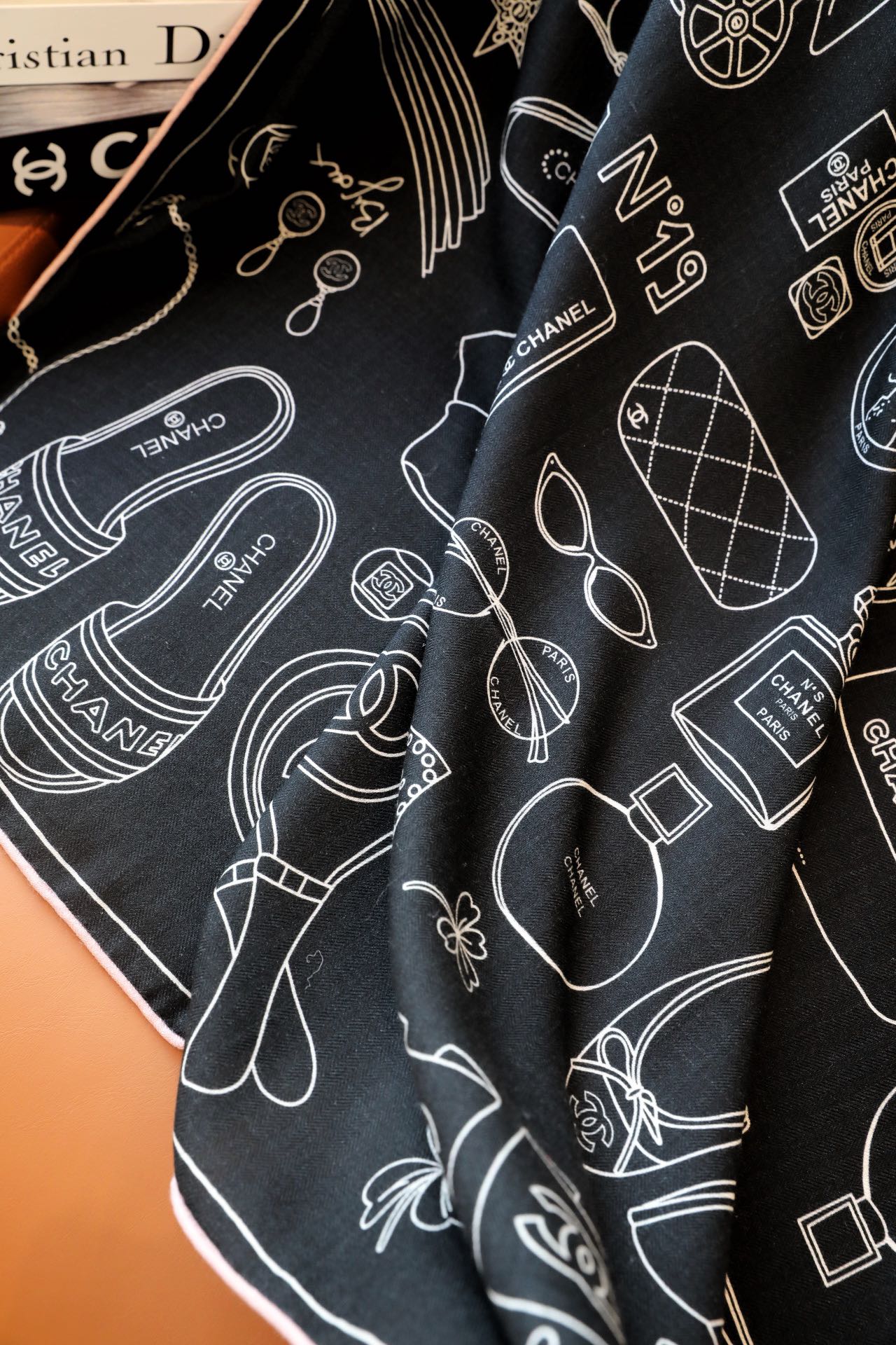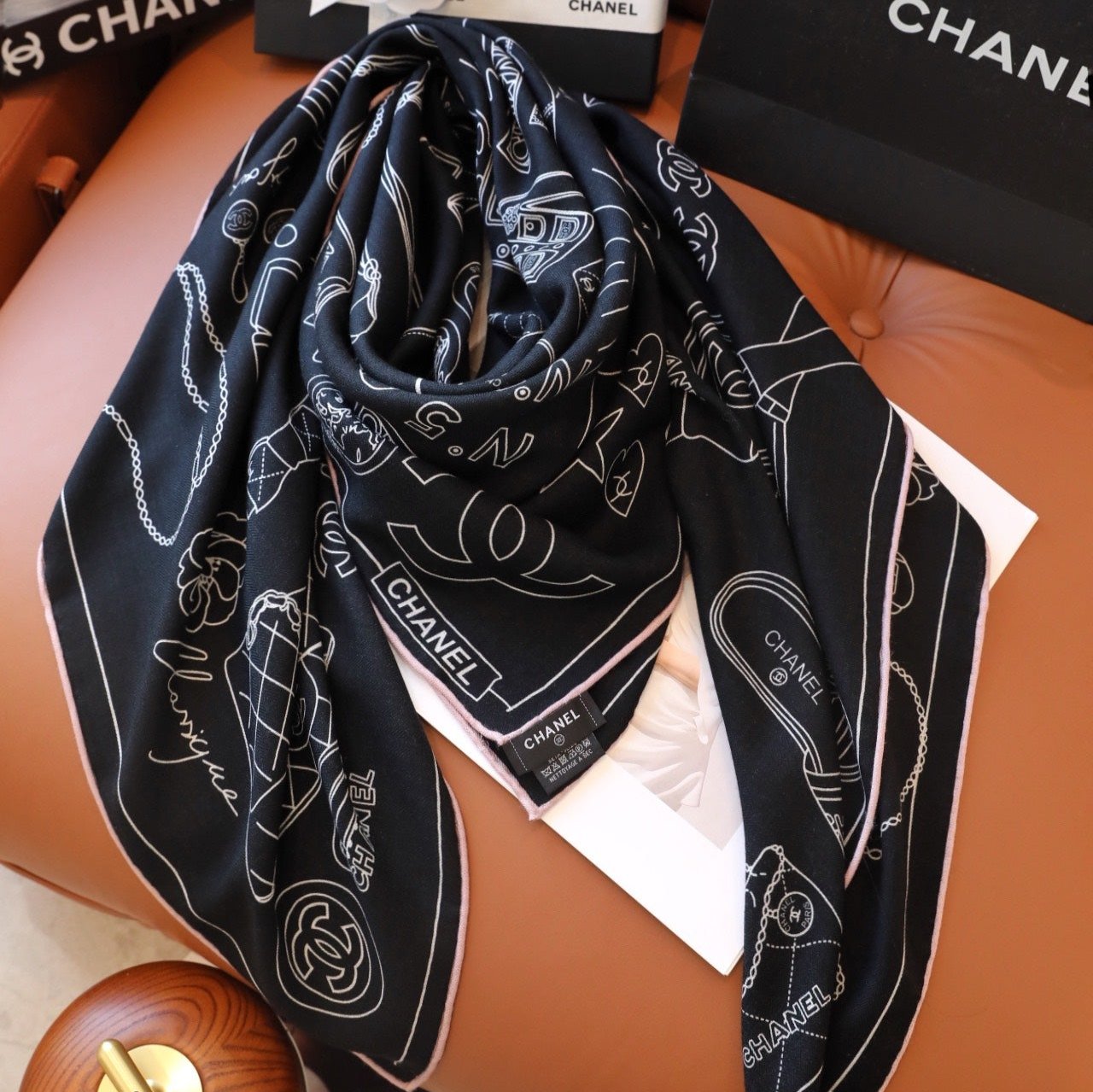 CC Square Scarf 140 CM In Black Mix White Cashmere Silk 368822