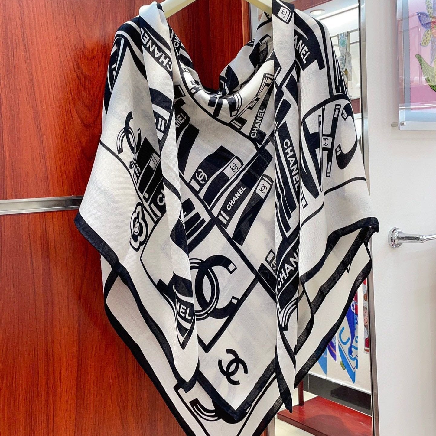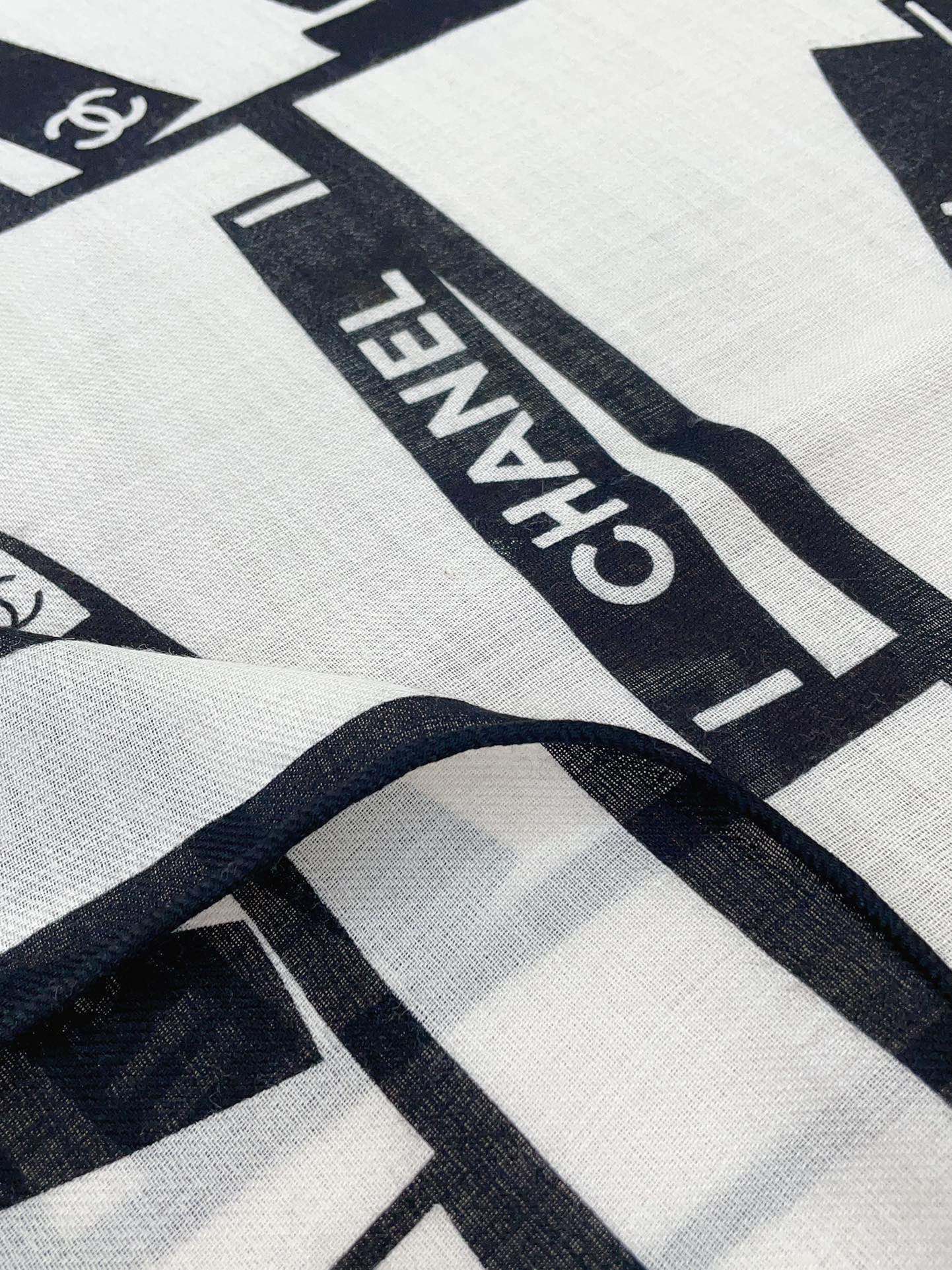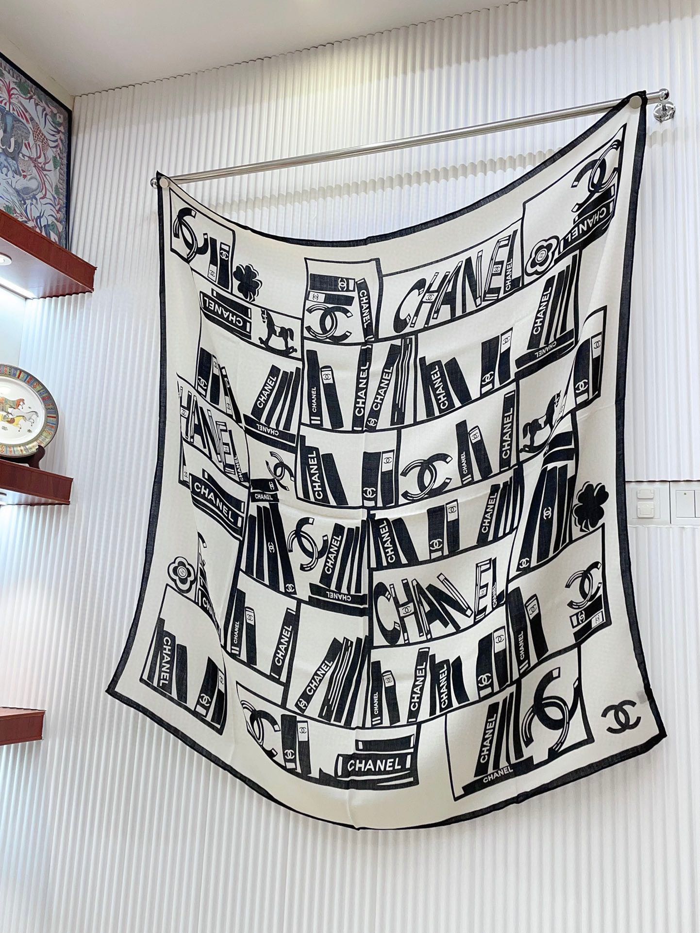 CC Square Scarf 140 CM In White Black Silk 422757