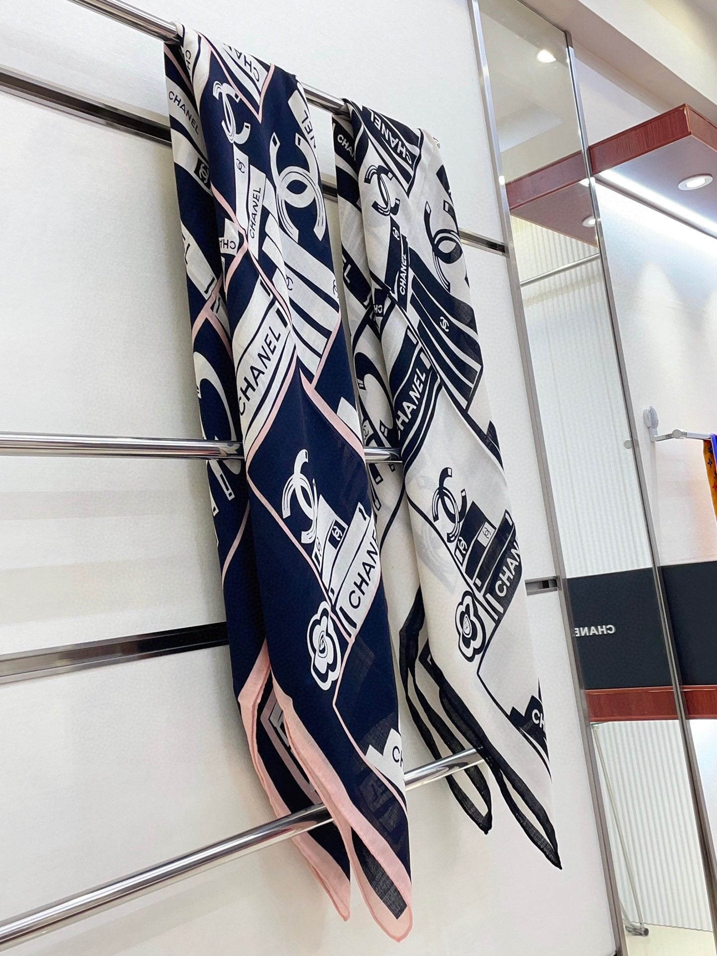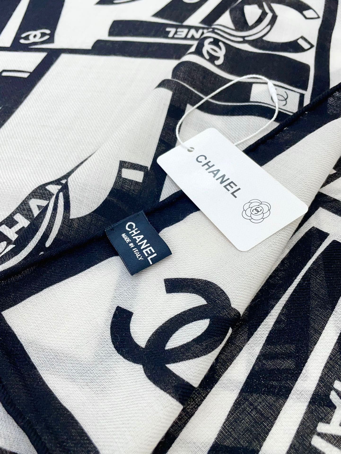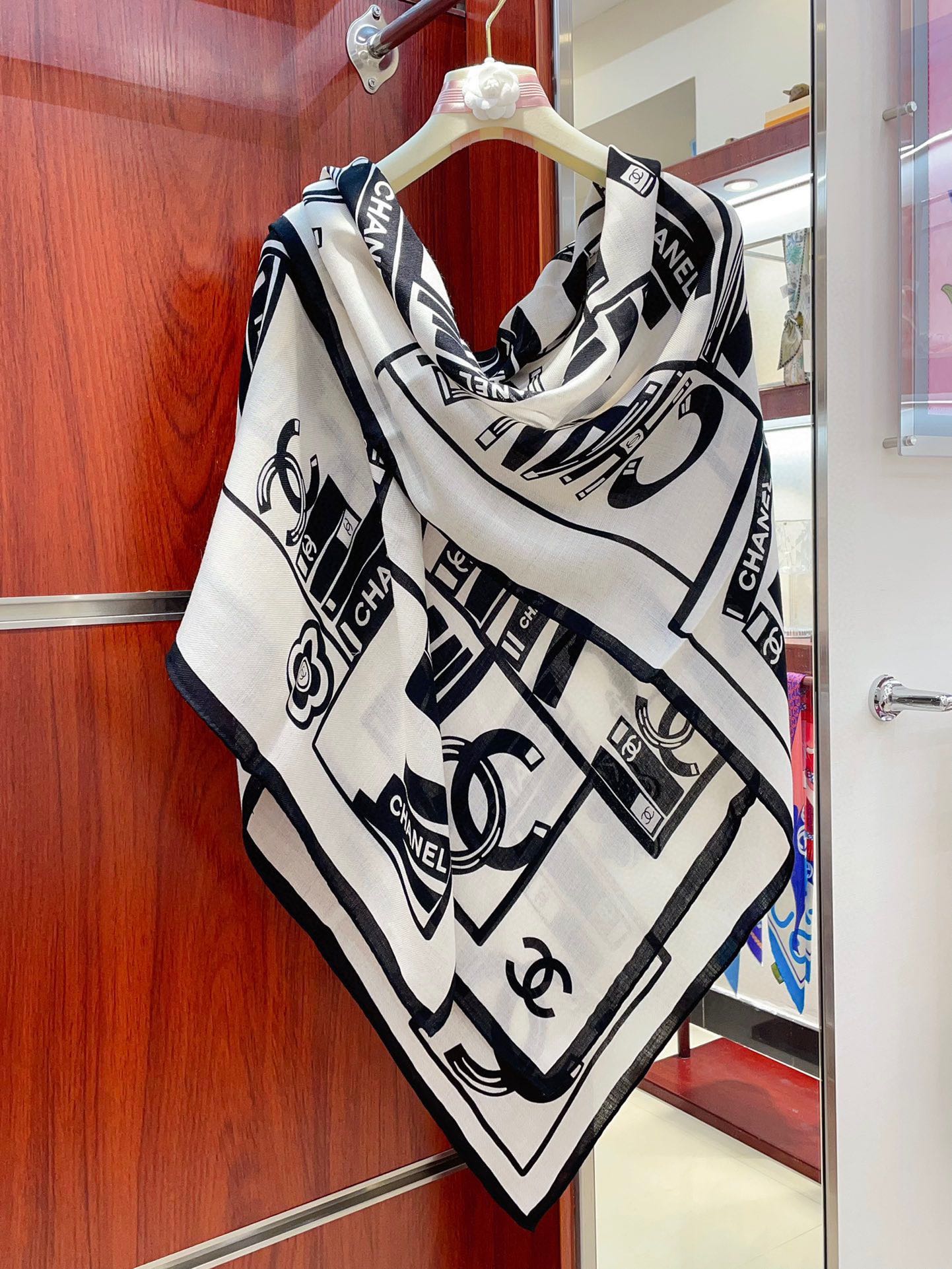 CC Square Scarf 140 CM In White Black Silk 422757