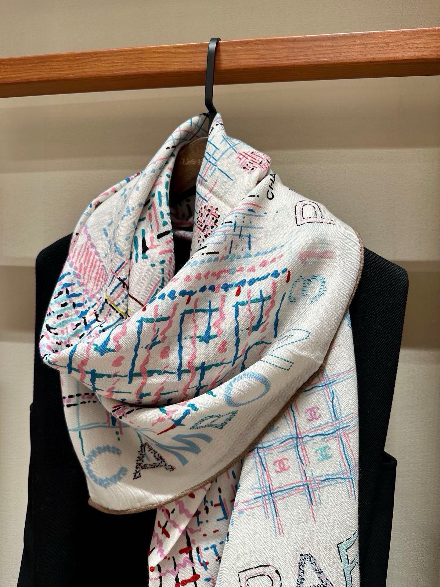 CC Square Scarf 140 CM In White Colorful Cashmere 182446