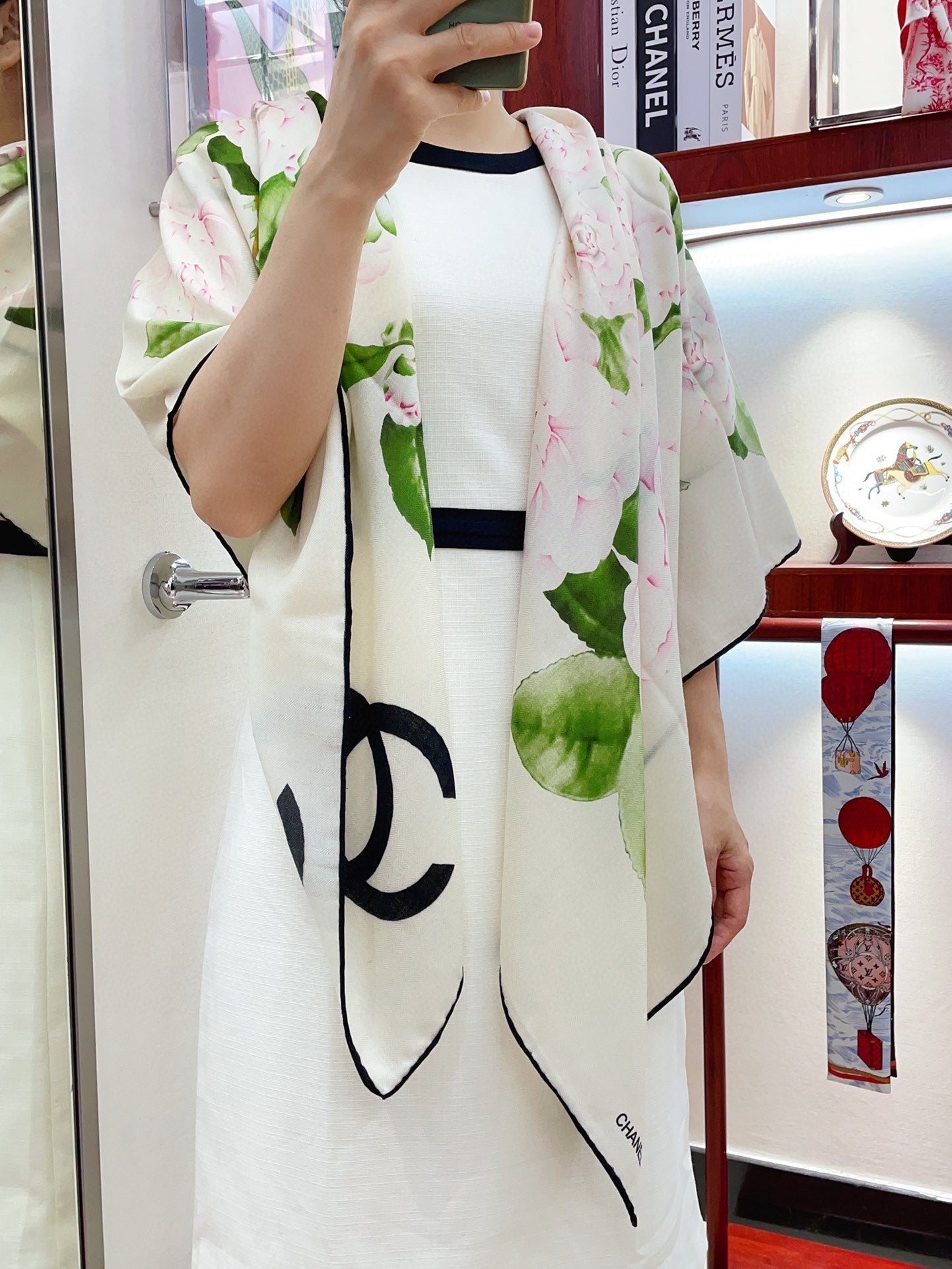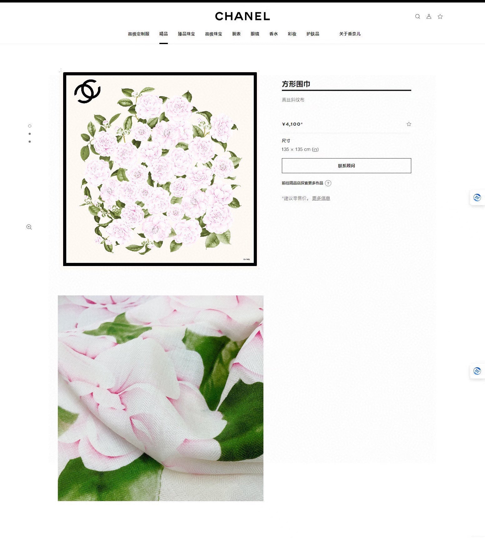CC Square Scarf 140 CM In White Colorful Cashmere And Silk 418214