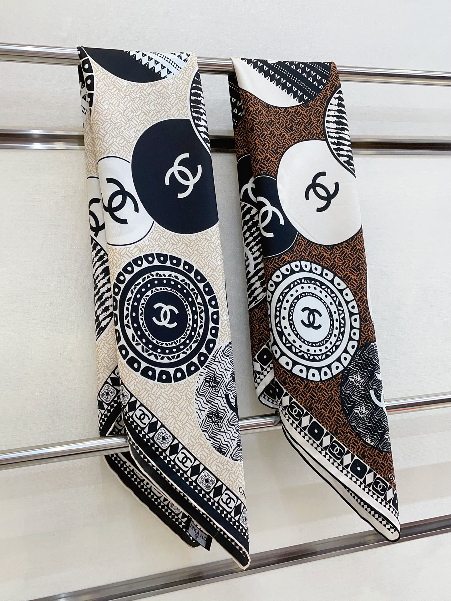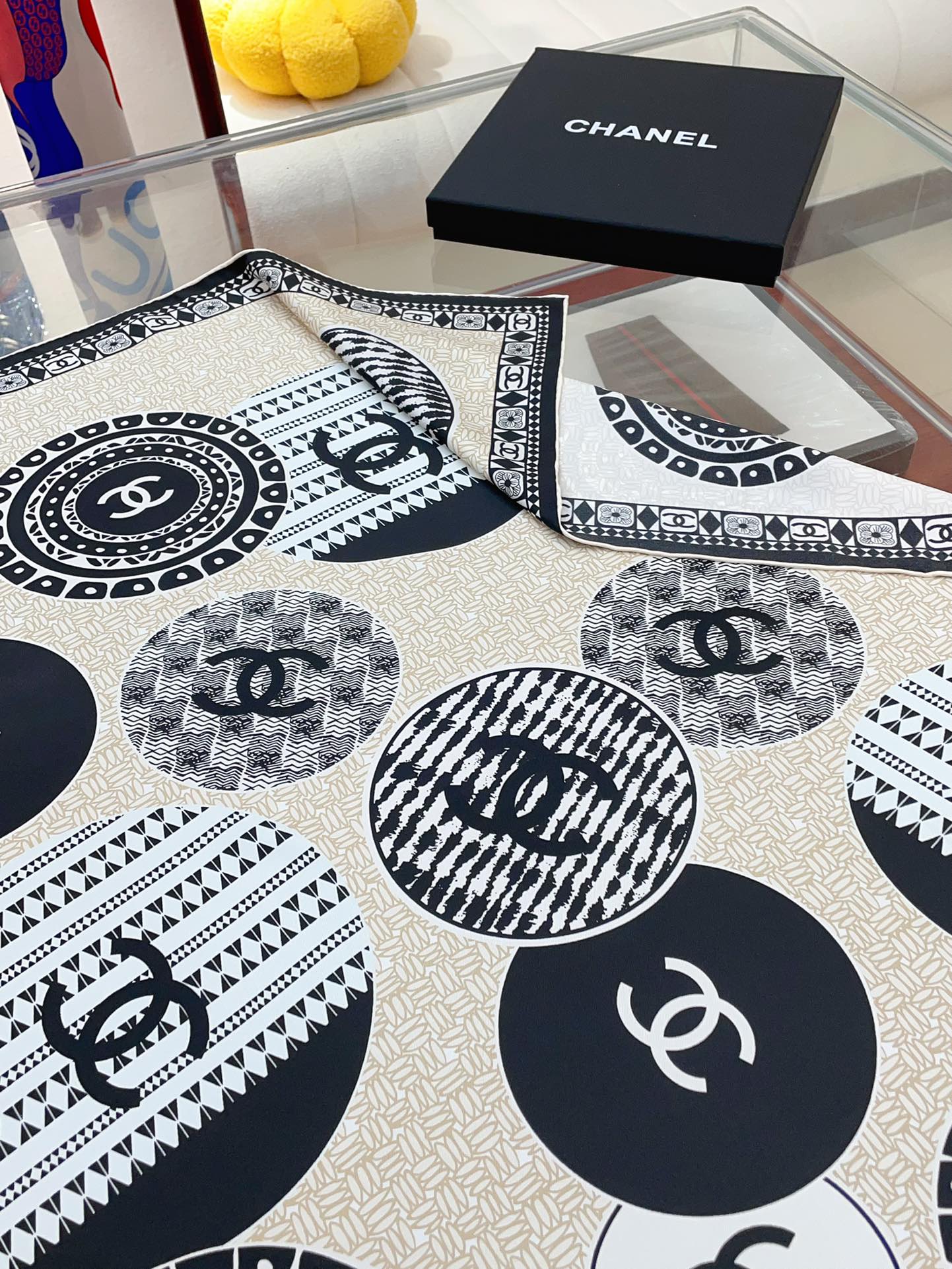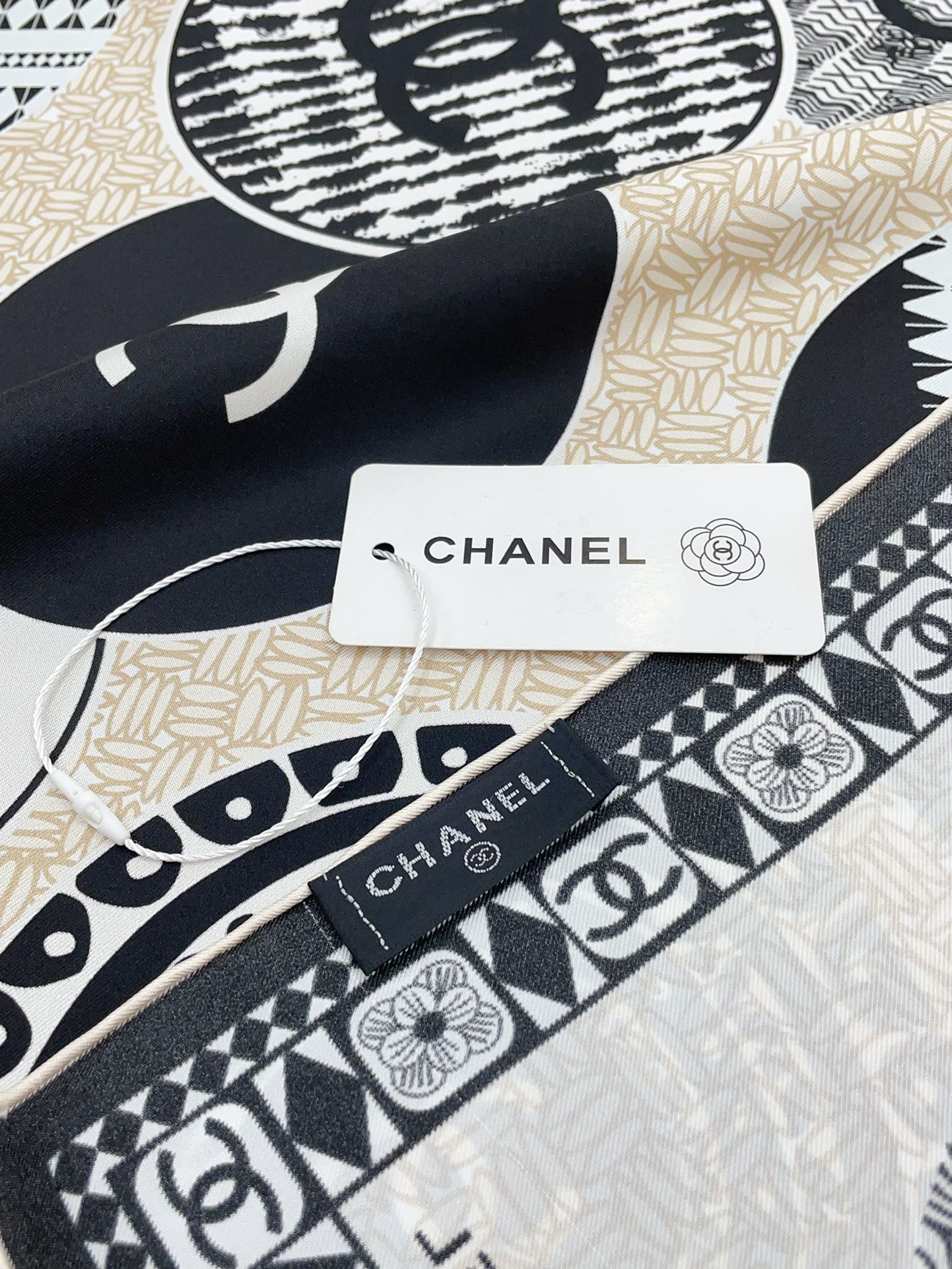 CC Square Scarf 90 CM In Beige Multi-Pattern Silk Twill 231847