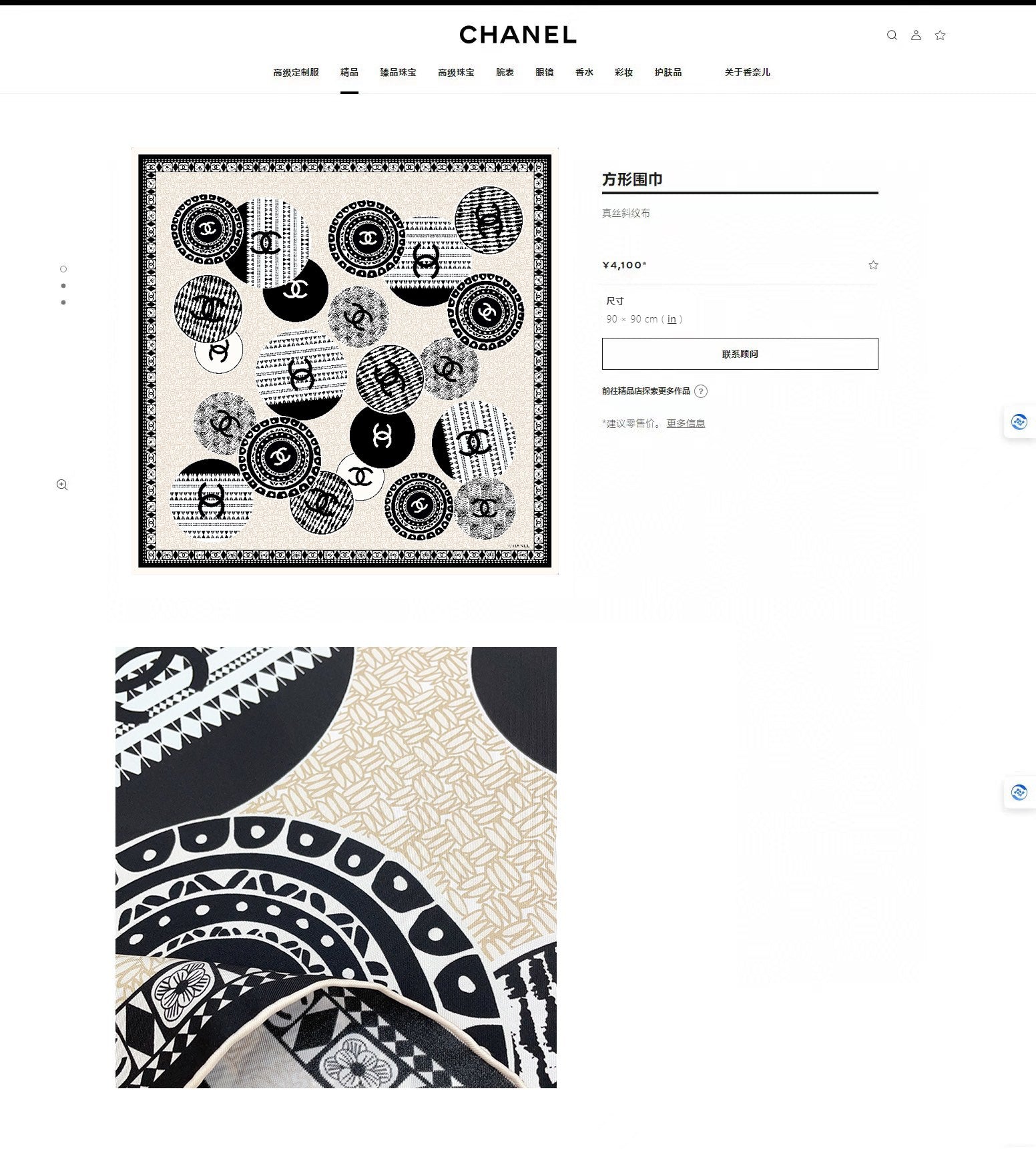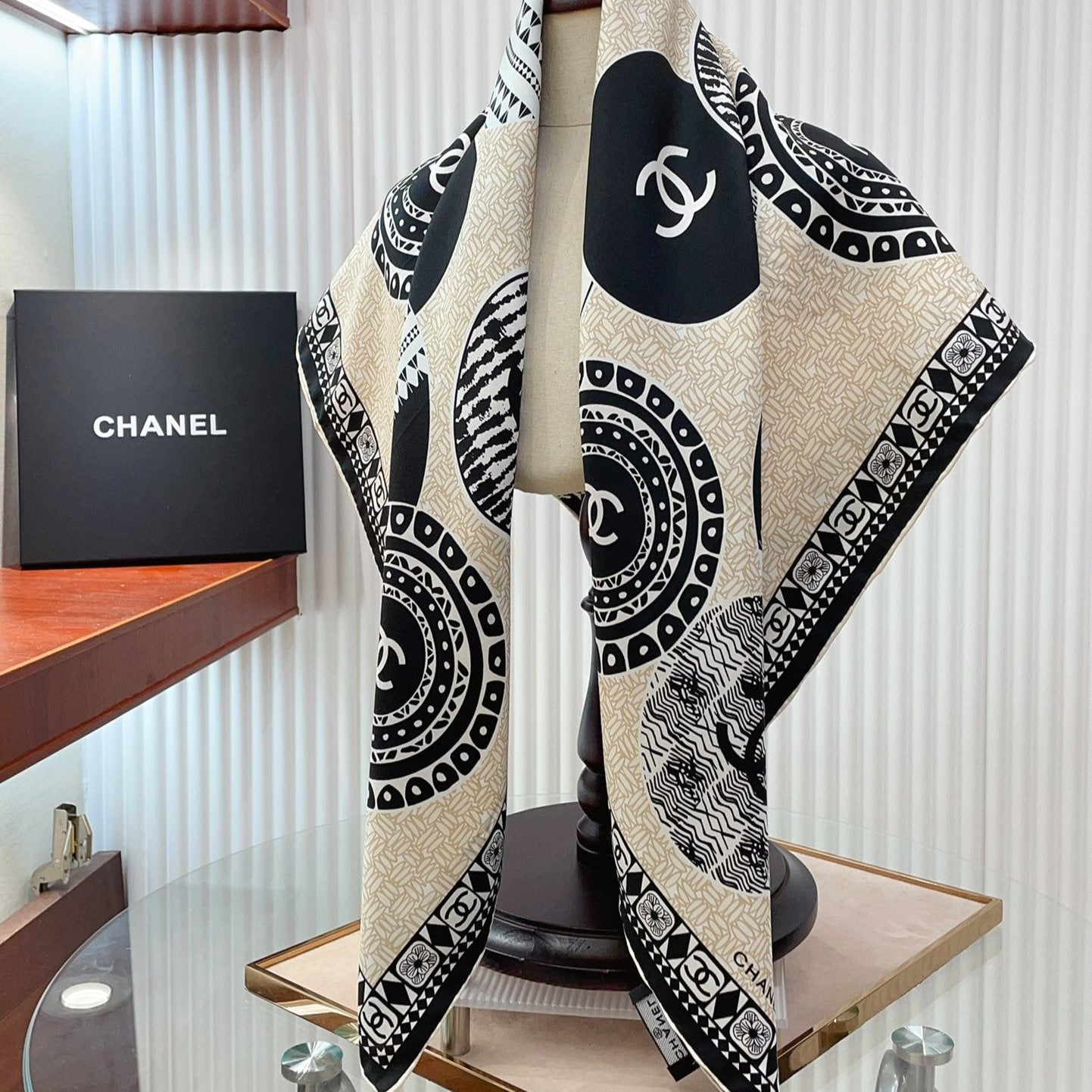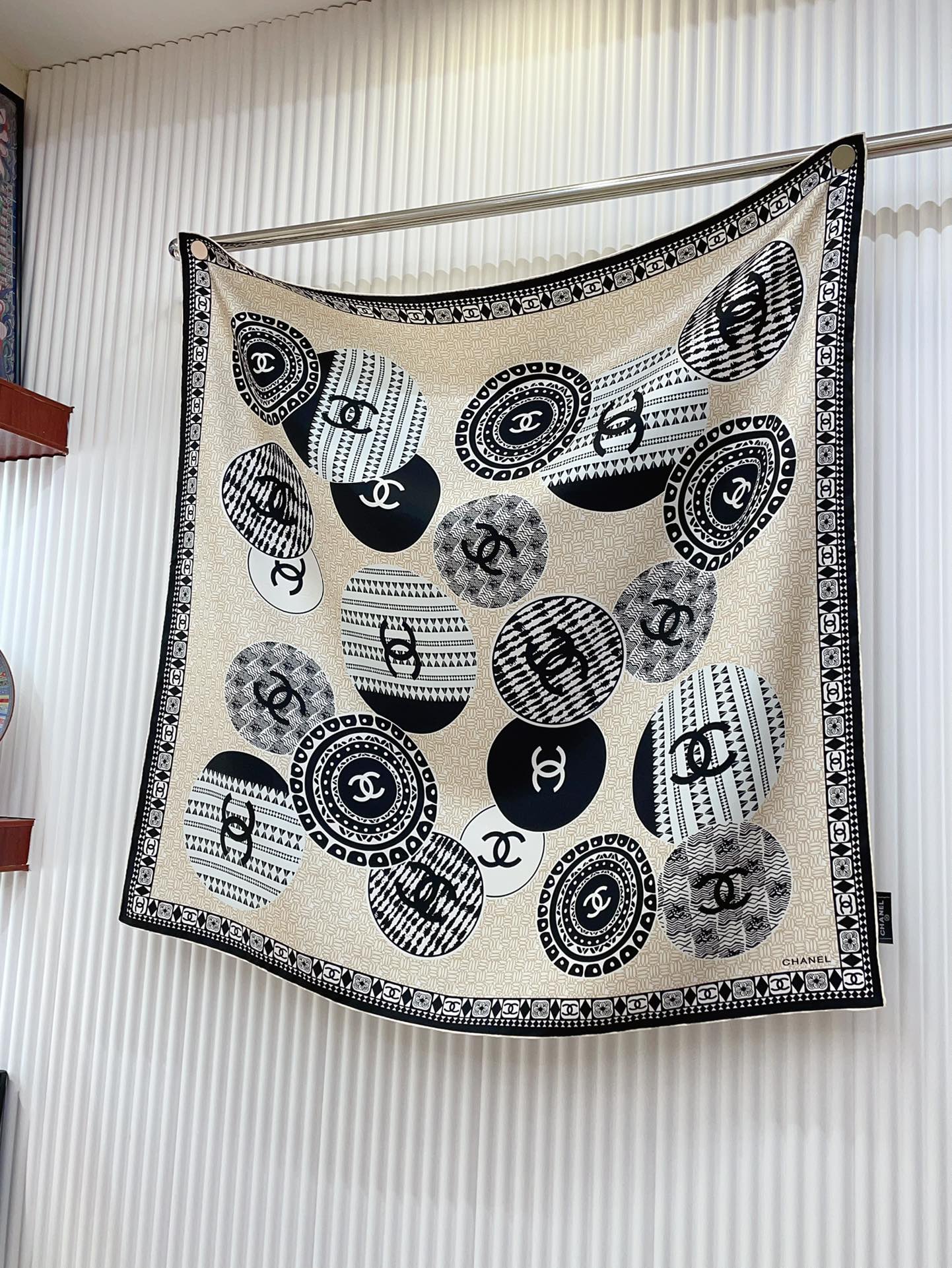 CC Square Scarf 90 CM In Beige Multi-Pattern Silk Twill 231847