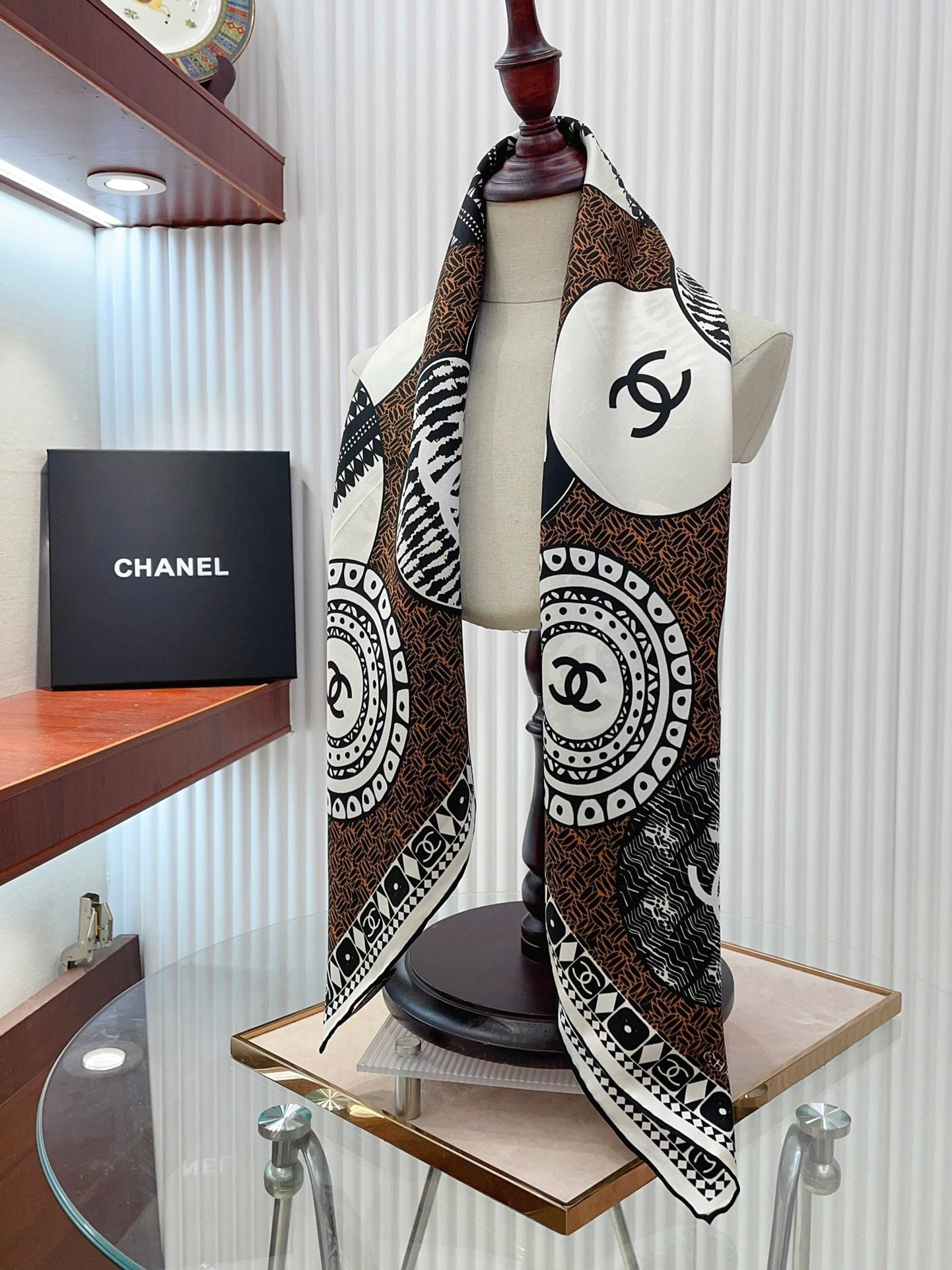 CC Square Scarf 90 CM In Brown Multi-Pattern Silk Twill 231846