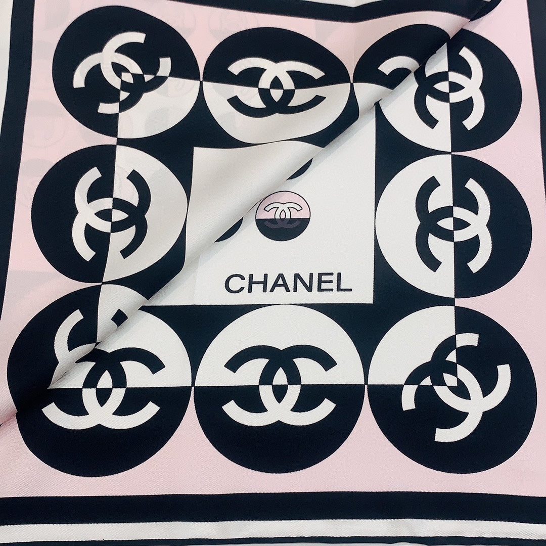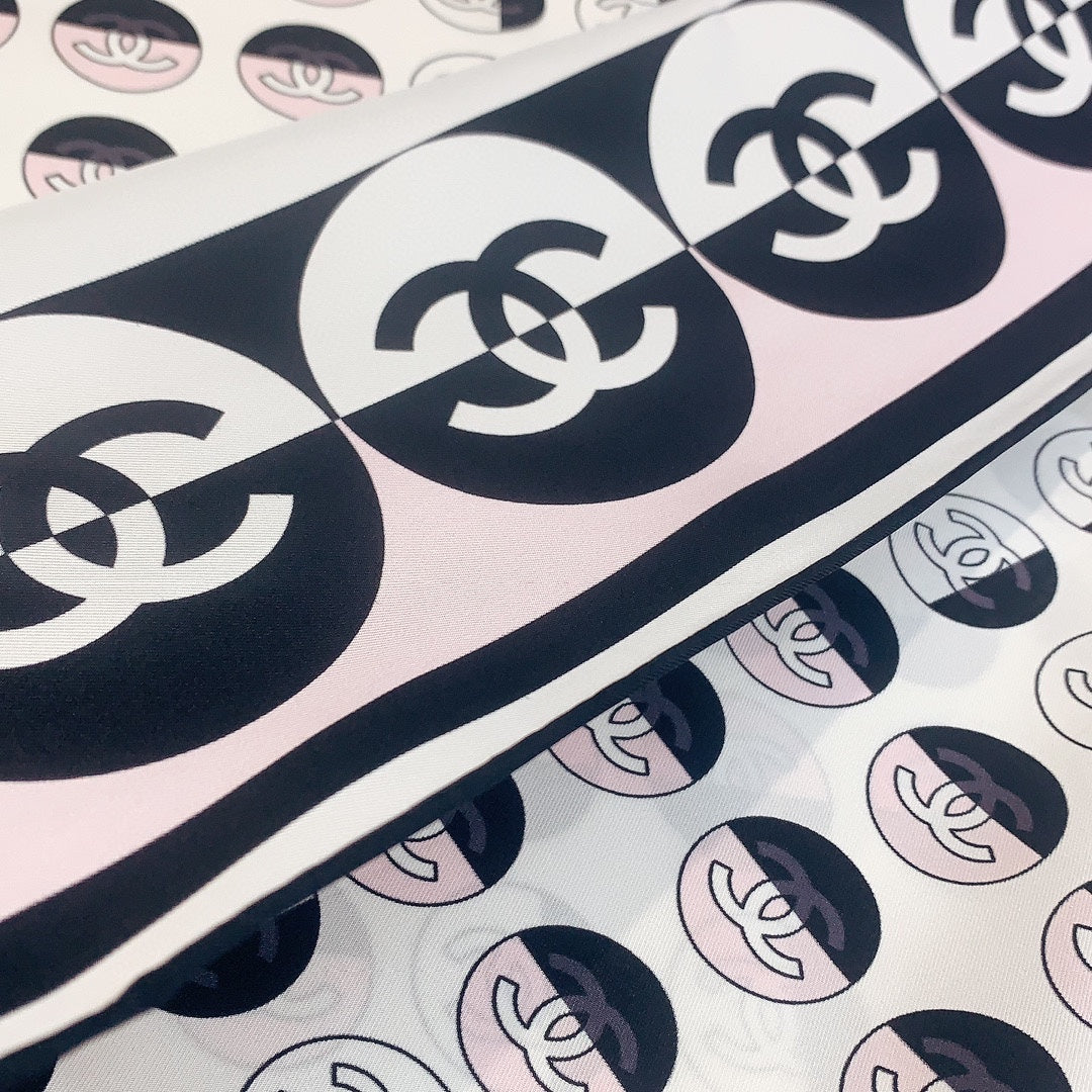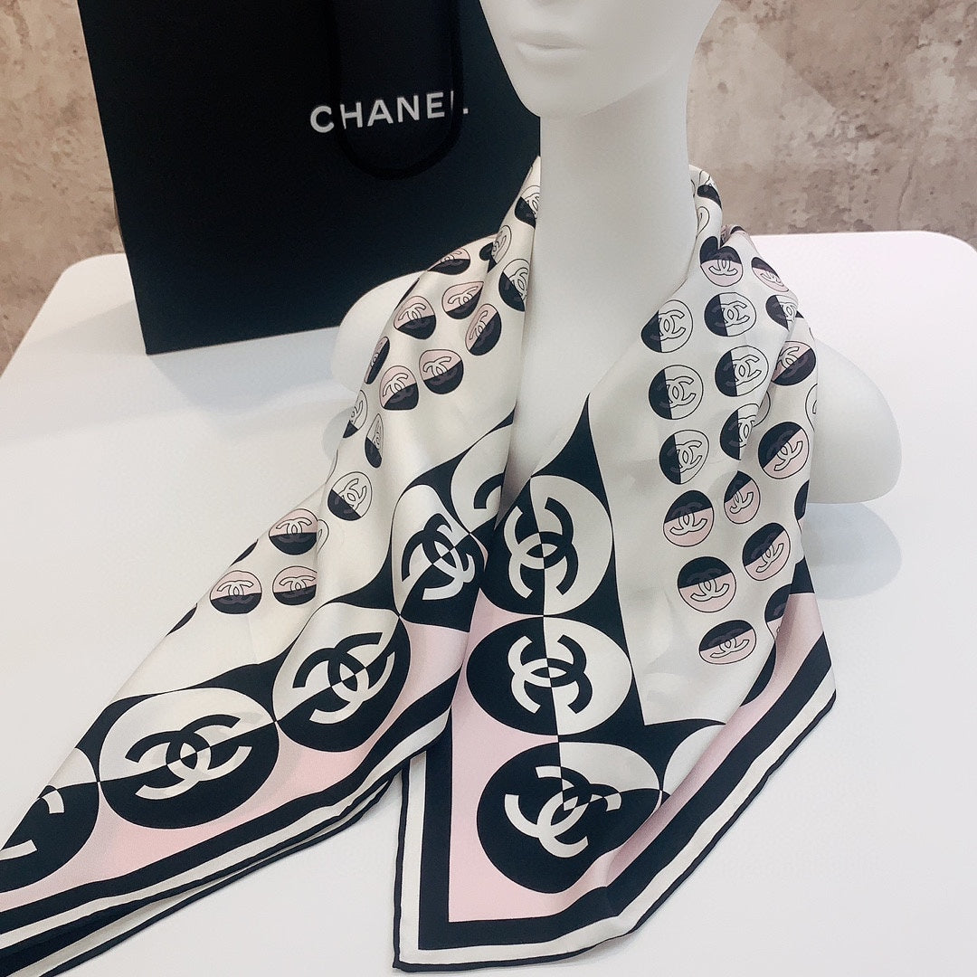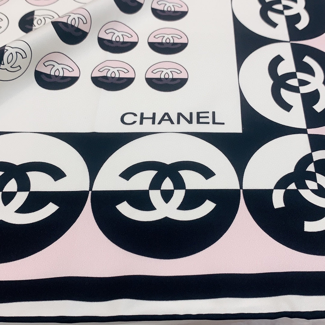 CC Square Scarf 90 CM In Light Pink Mix White Black Silk Twill 288717