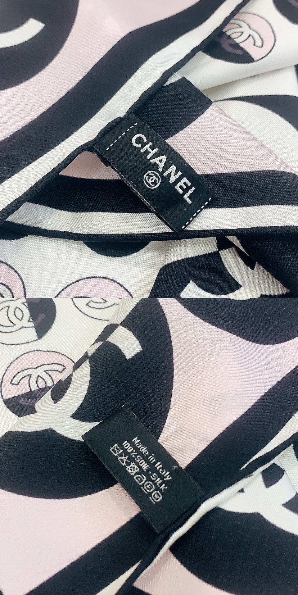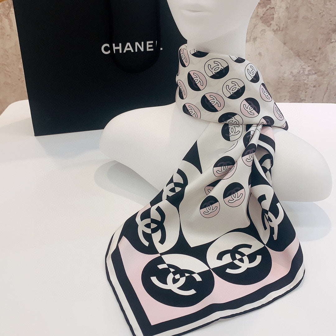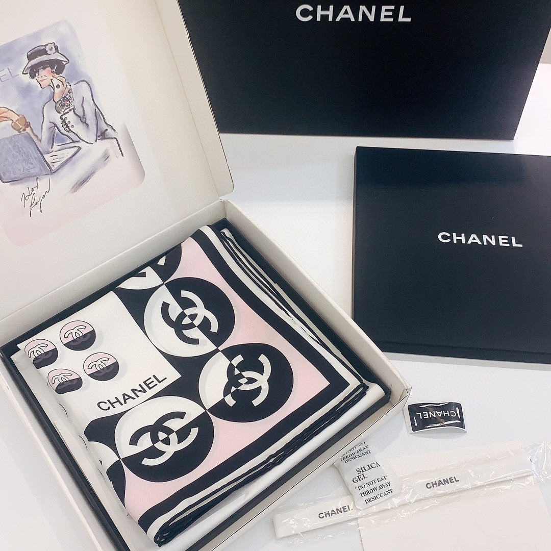 CC Square Scarf 90 CM In Light Pink Mix White Black Silk Twill 288717
