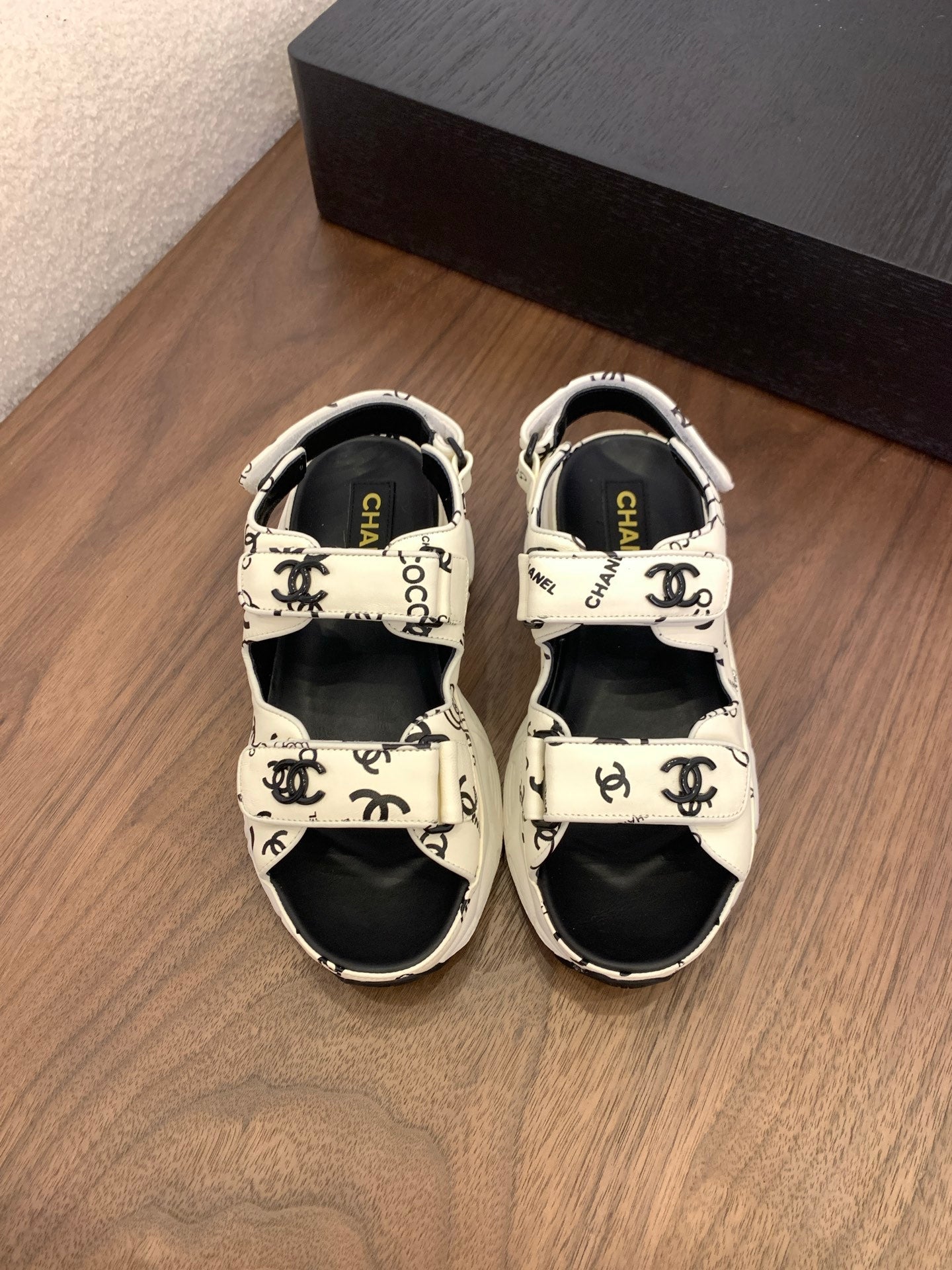 CC Toe Sandals White Mix Camellia Pattern Leather 299536