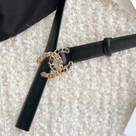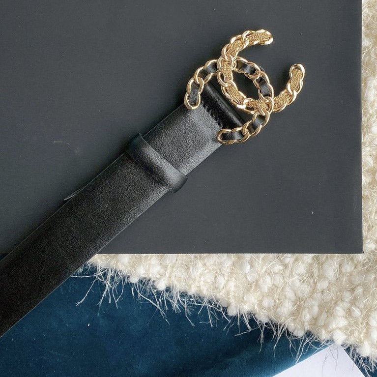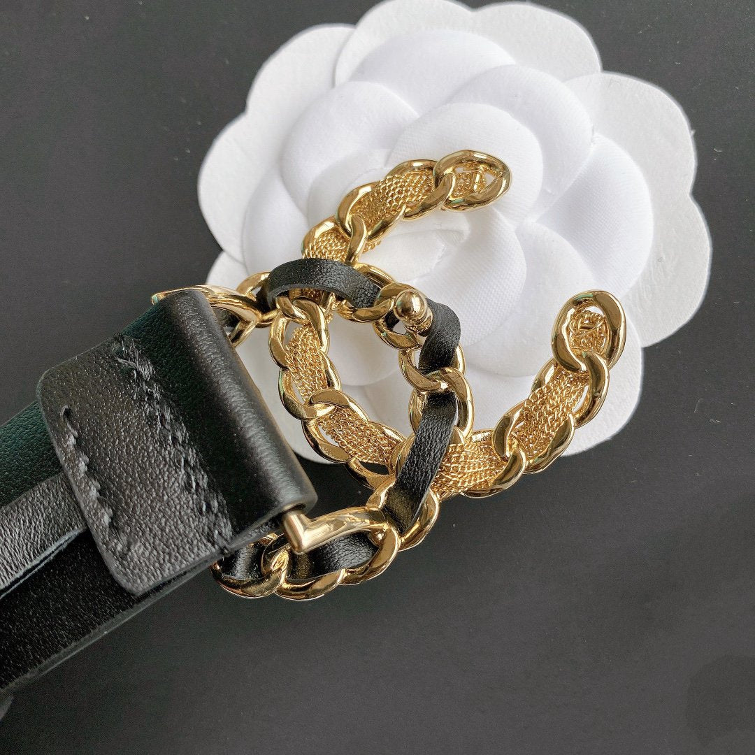 CC WOMEN'S BELT 3.0CM BUCKLE MULTICOLOR LEATHER BLACK