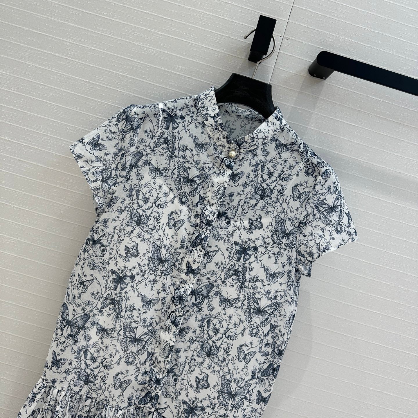CD 2025 Butterfly Printed Long Skirt White mix Navy Blue Cotton