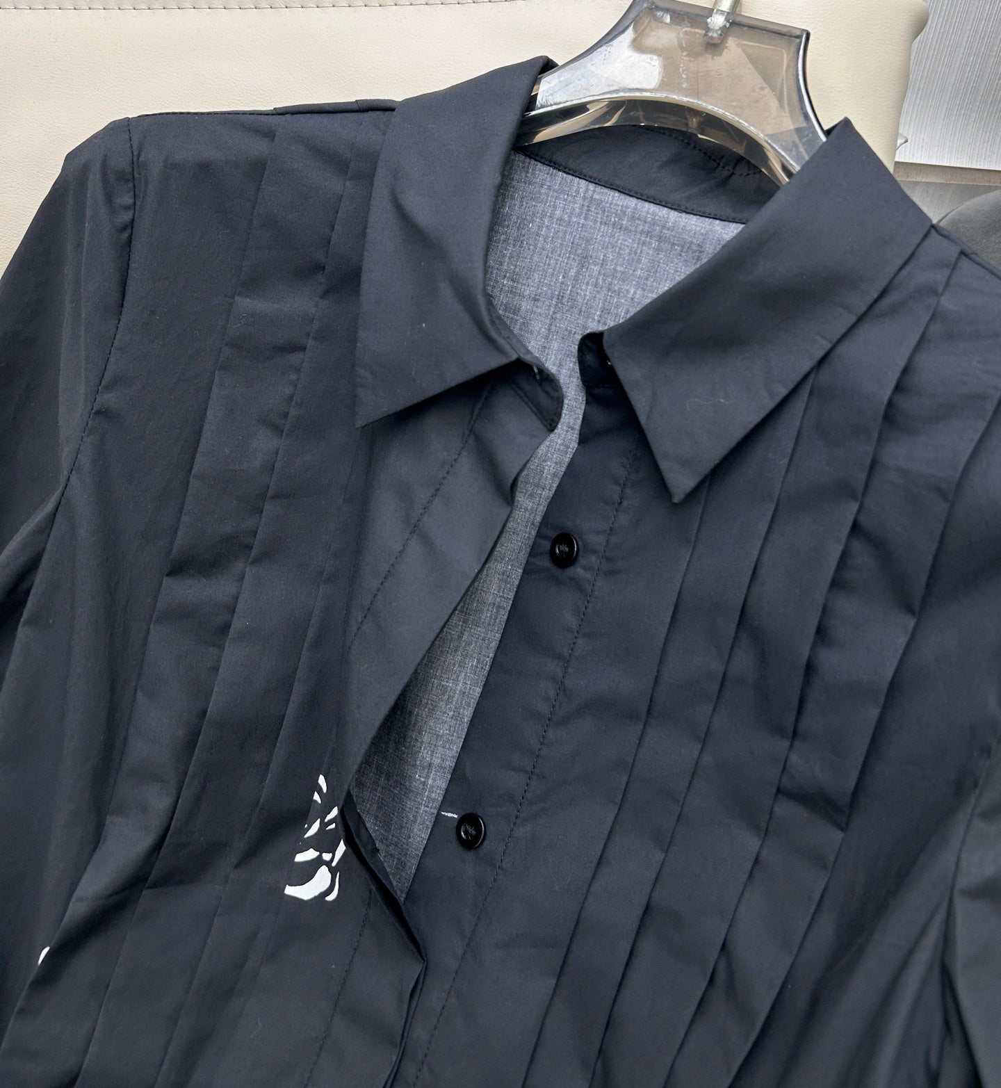 CD 2025 Floral Short-sleeved Belt Shirt Dress Black mix White Cotton