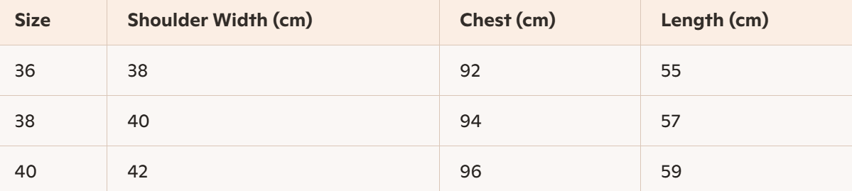 - Size : 36, 38, 40