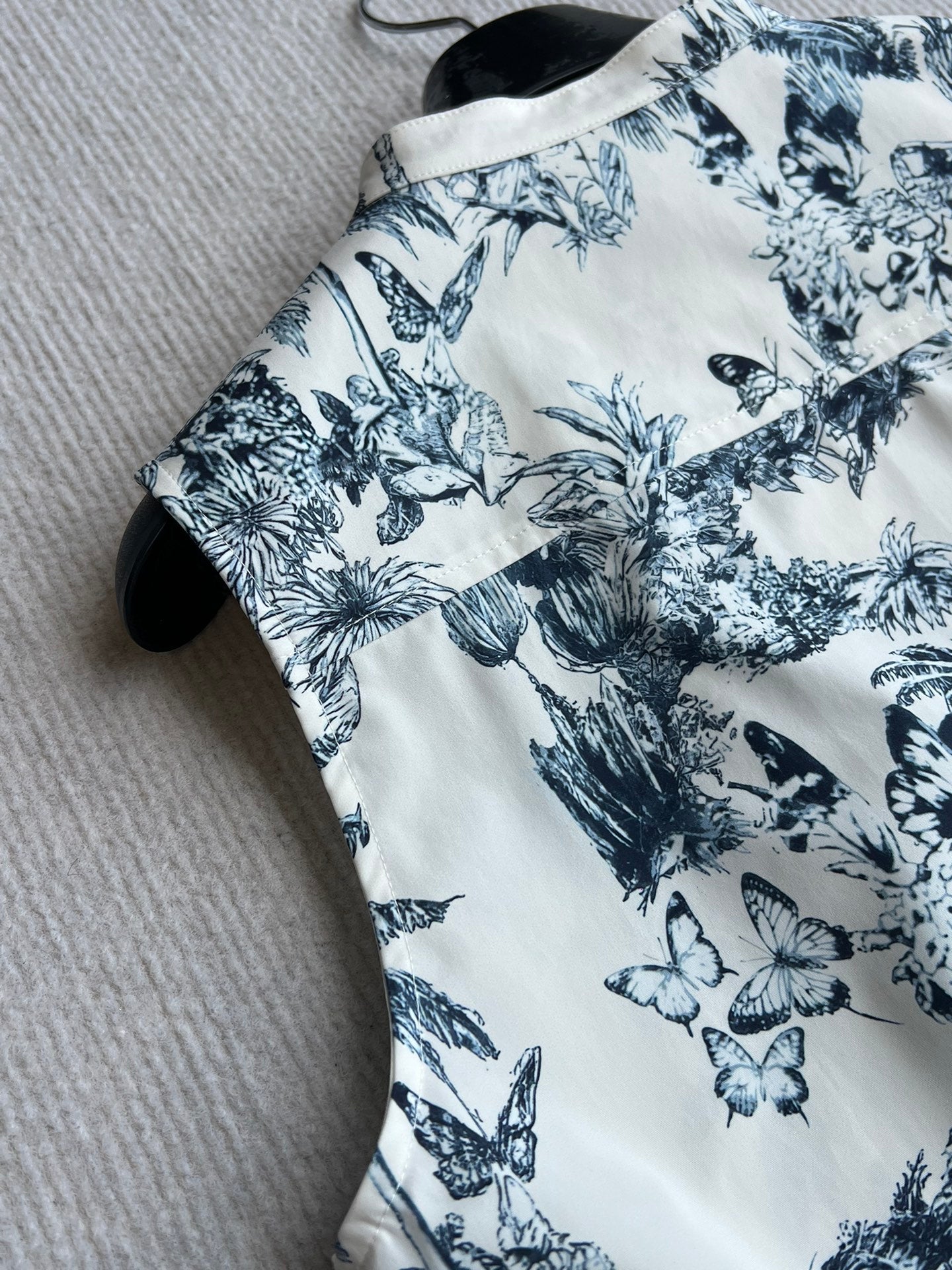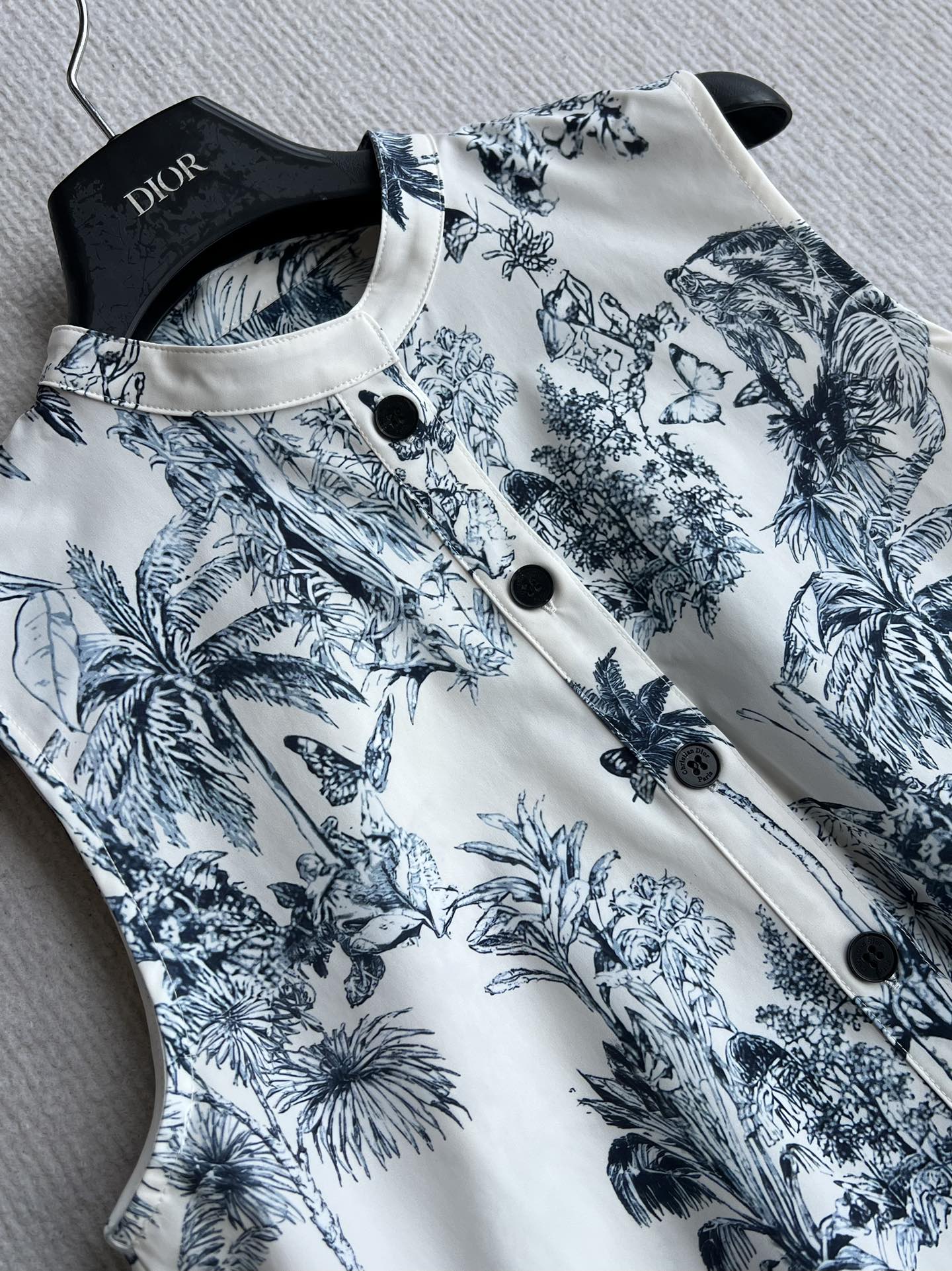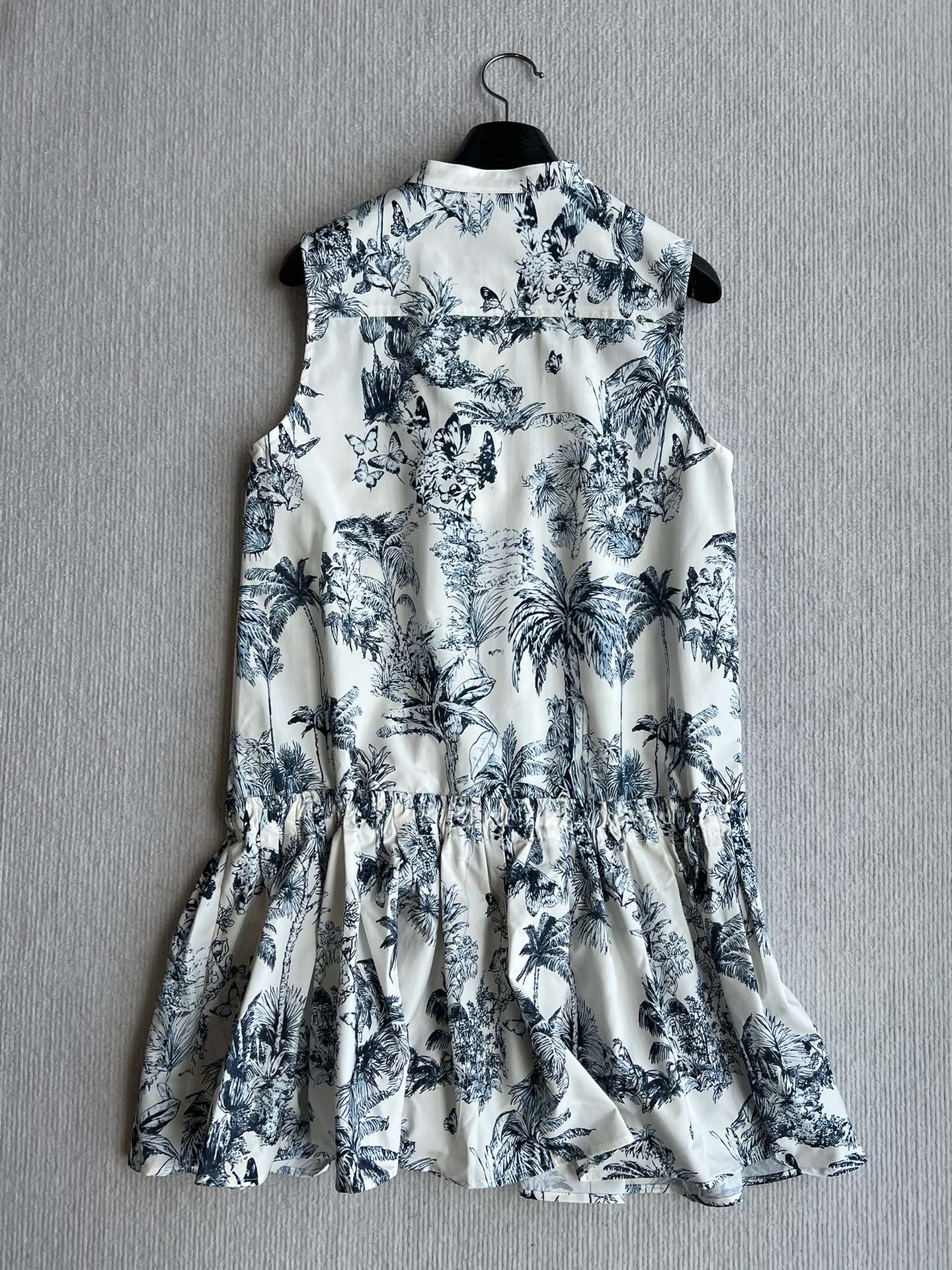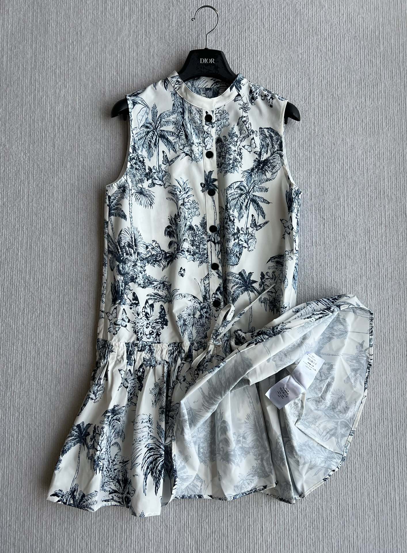 CD 25 Painting Waist Sleeveless Dress White Blue Cotton Polyester