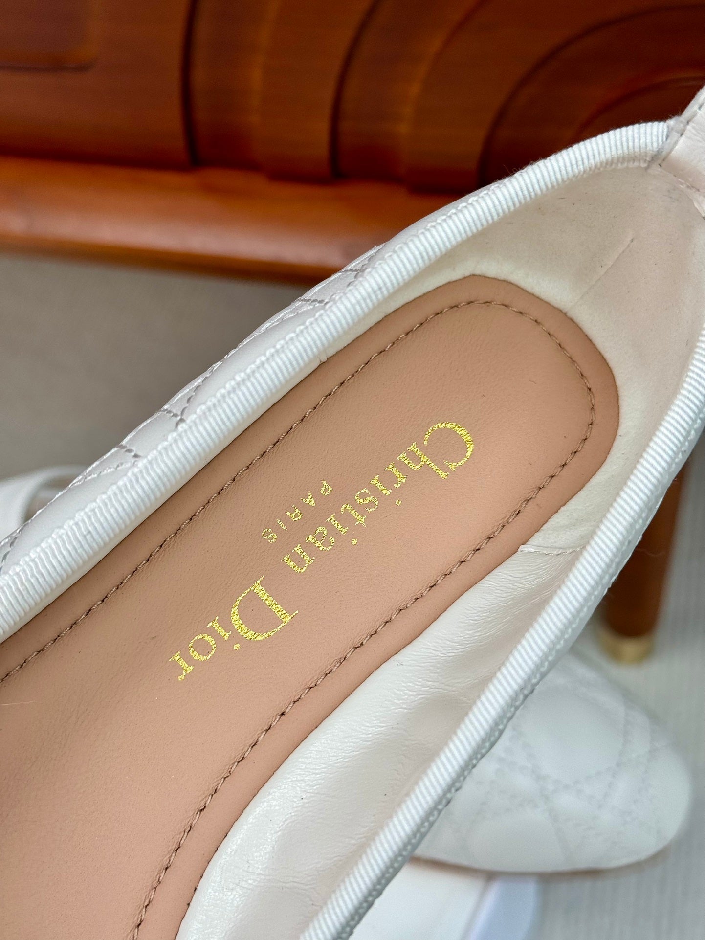 cd ballet flat white lambskin mop