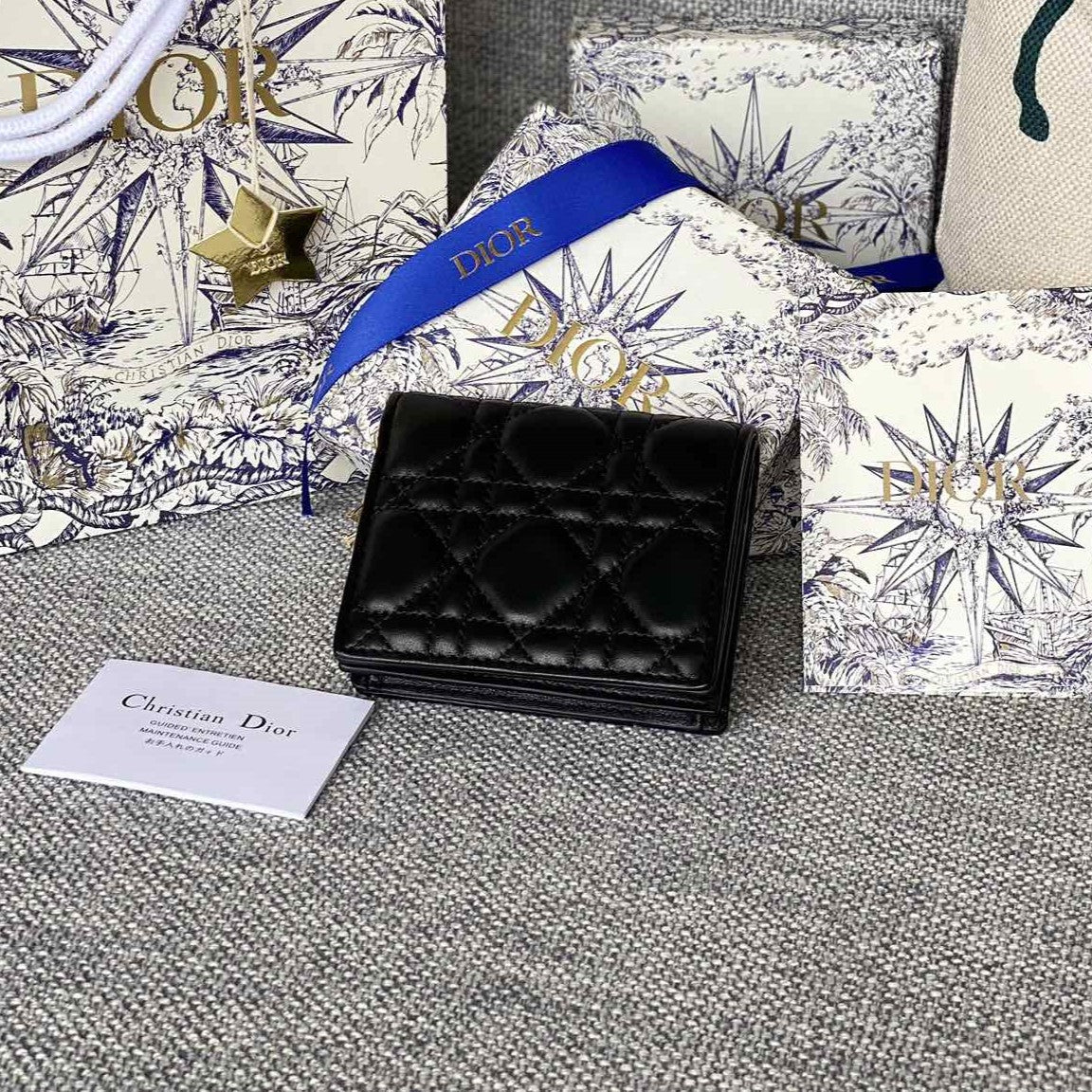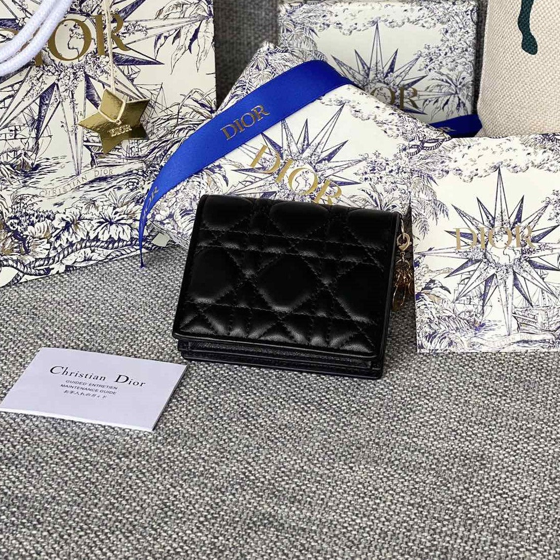 CD Caro 11cm Compact Wallet Black Calfskin