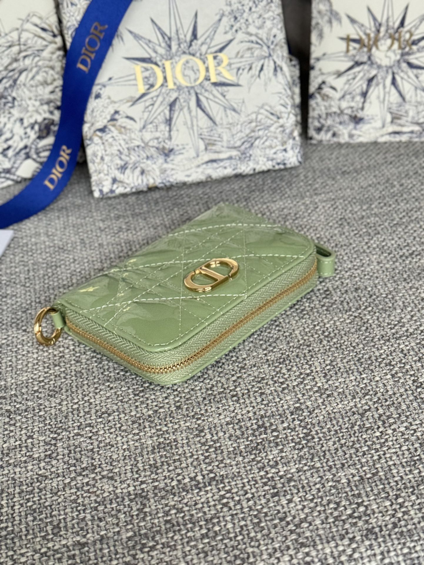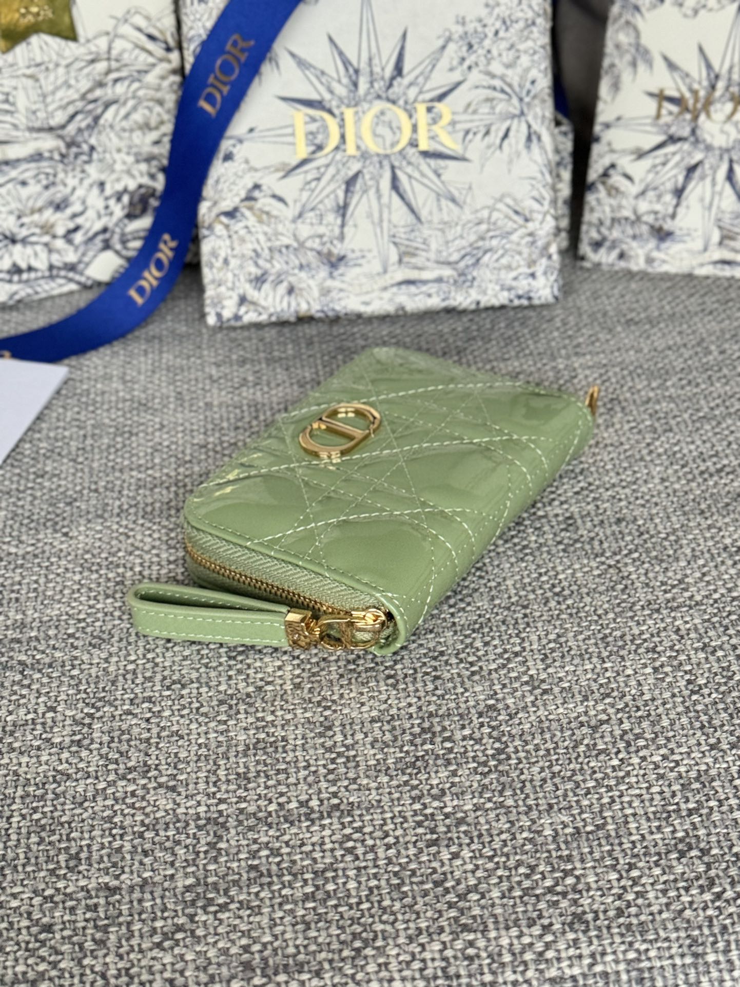 CD Logo Caro 11cm Compact Wallet Shiny Green Calfskin