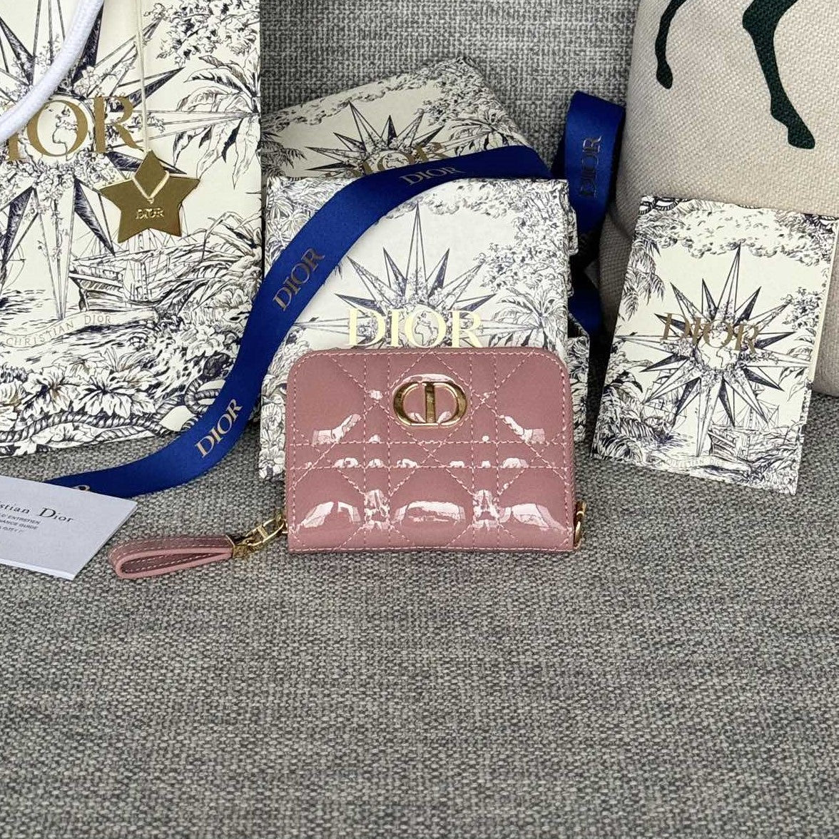 CD Logo Caro 11cm Compact Wallet Shiny Pink Calfskin