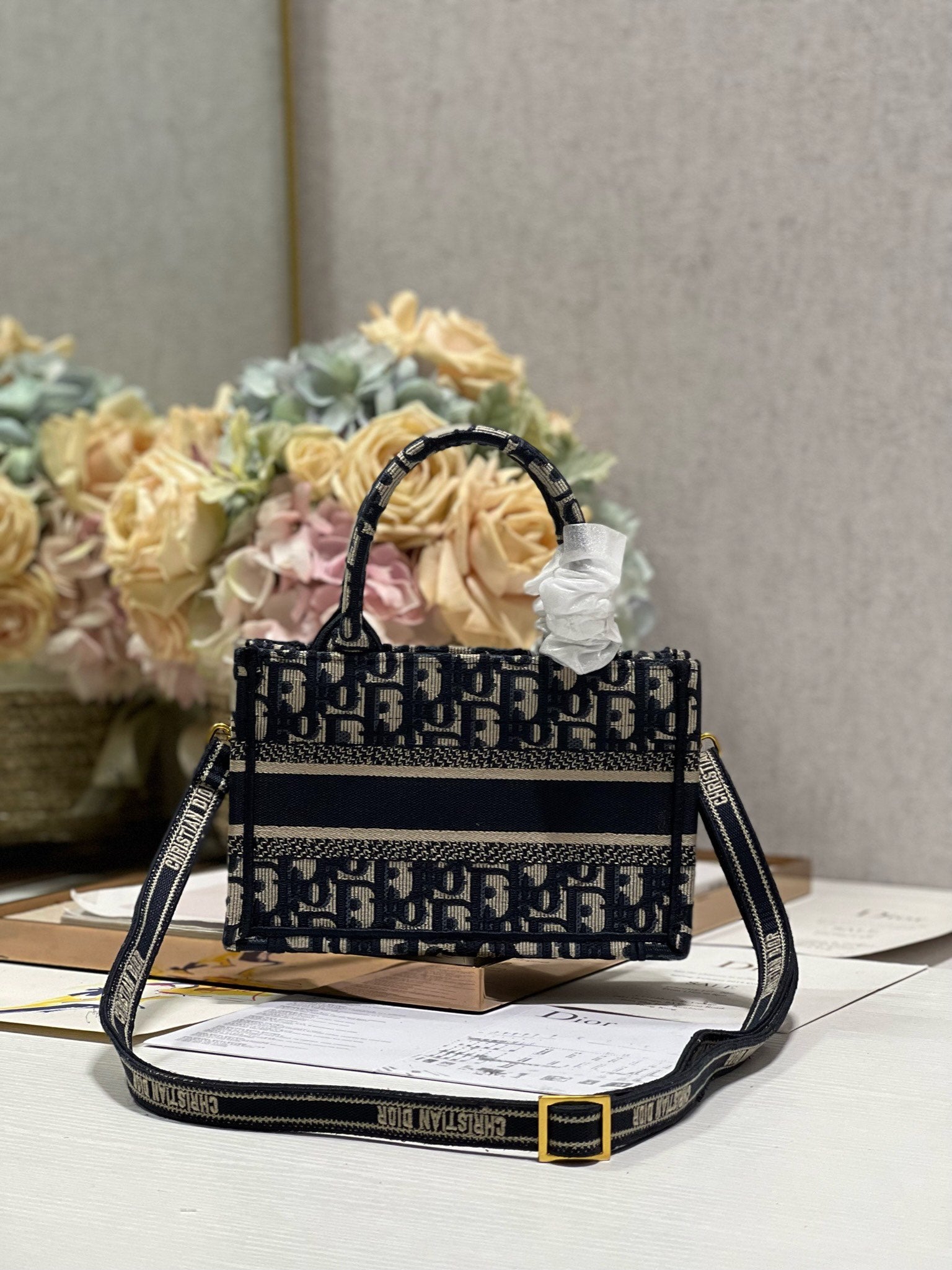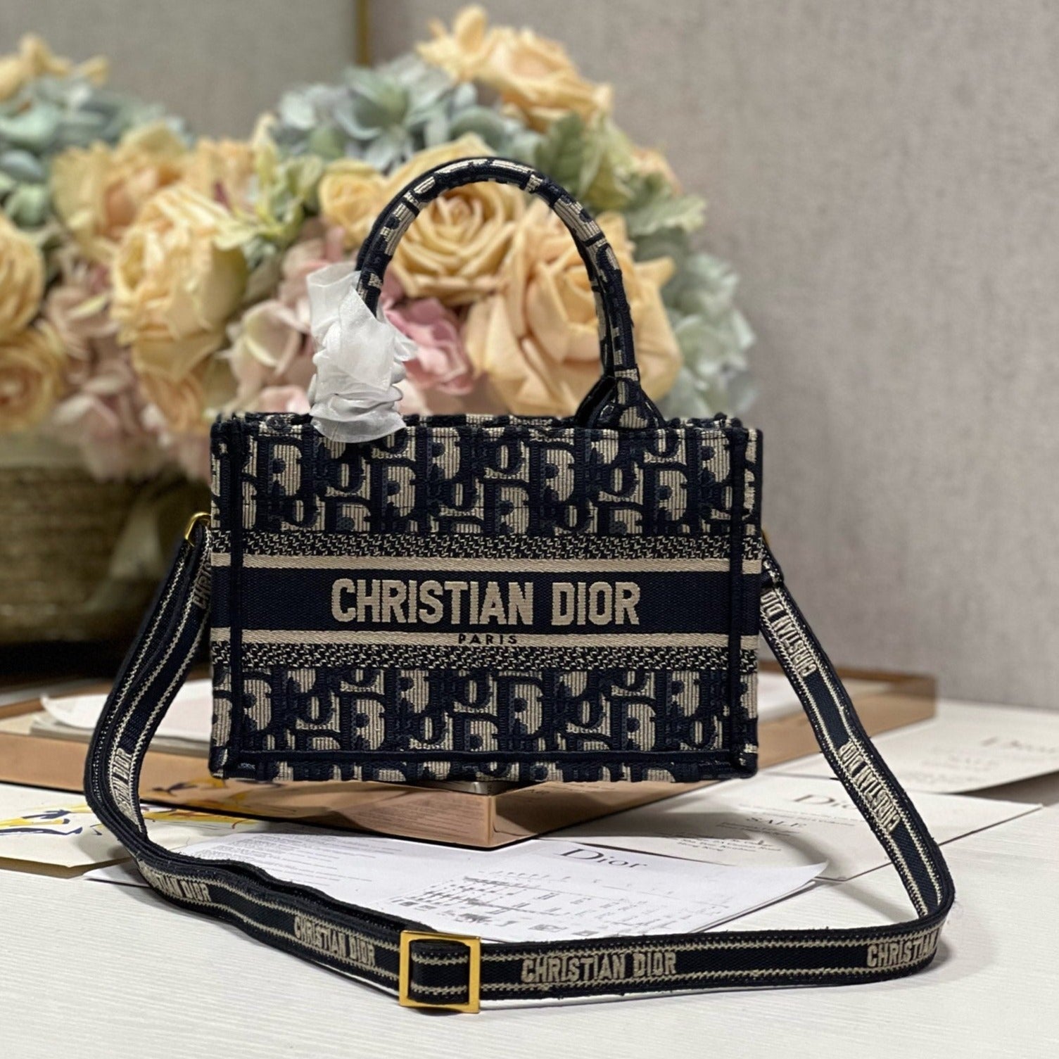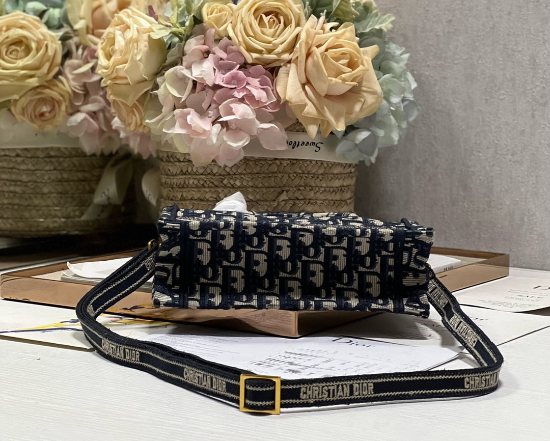 cd mini book tote 21.5 beige blue oblique embroidery calfskin