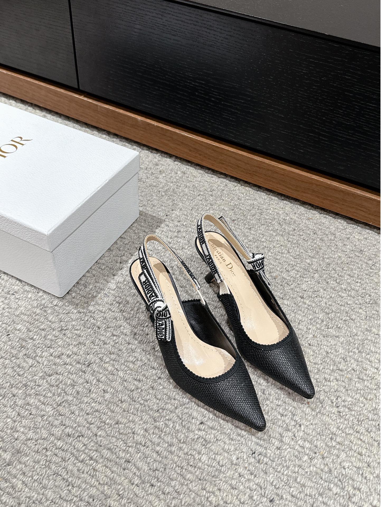 cd slingback 65 black raffia lambskin