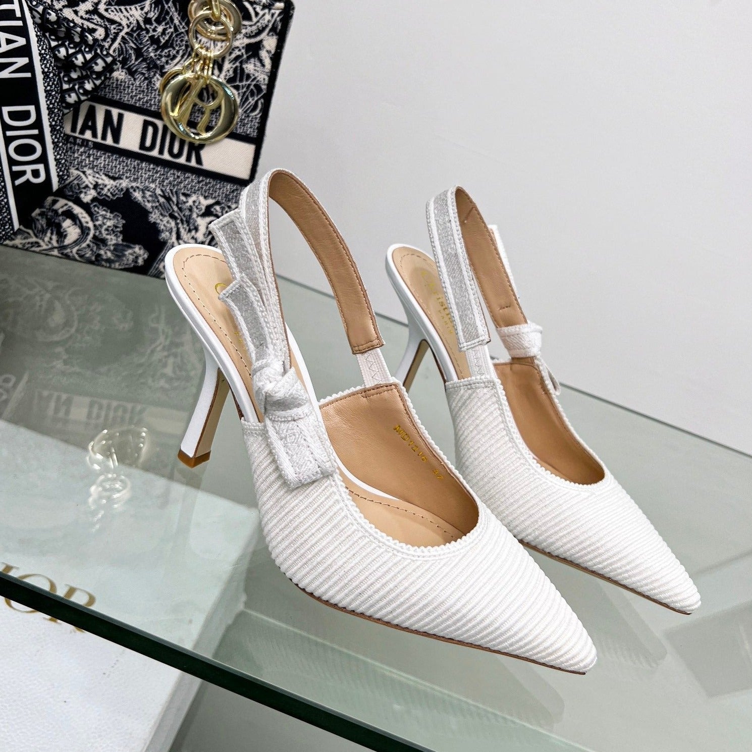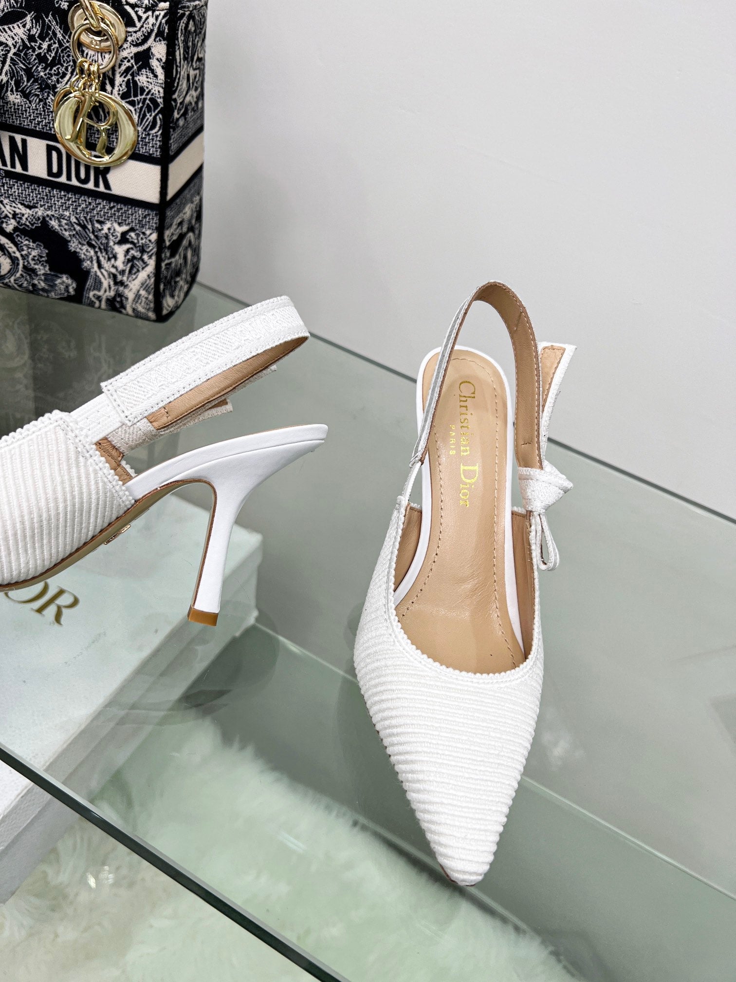 cd slingback pumps 95 white embroidered cotton