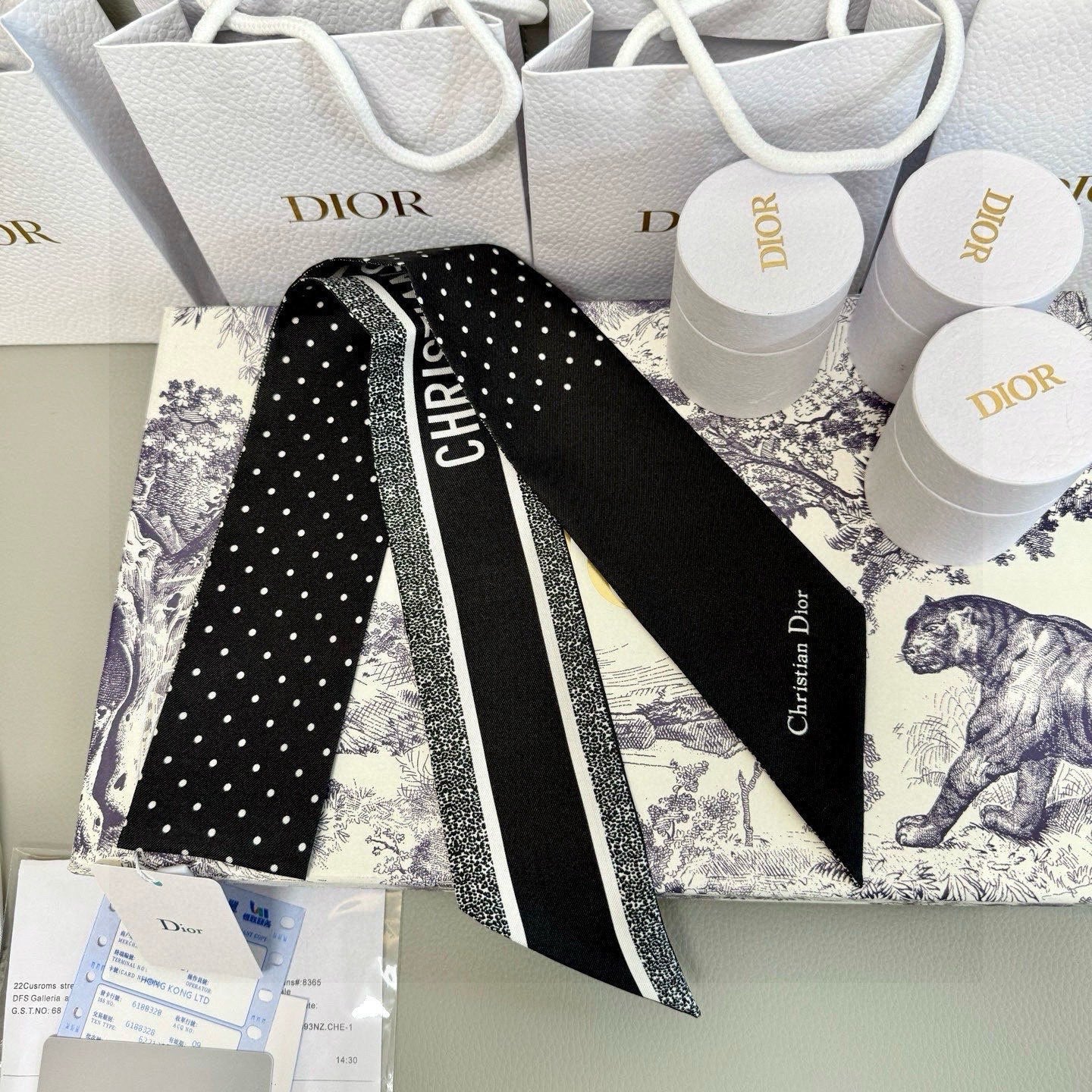 CD Twilly Mini Scarf 105cm Black Mulberry Silk 957049