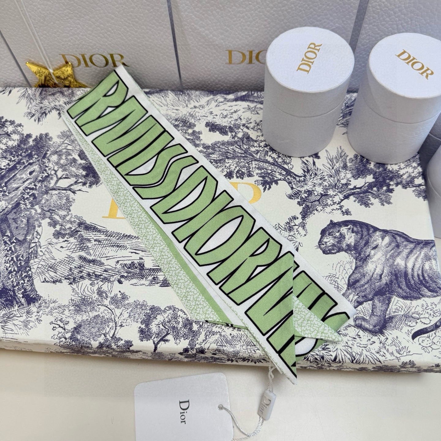 CD Twilly Mini Scarf 105cm Green Mulberry Silk 957051