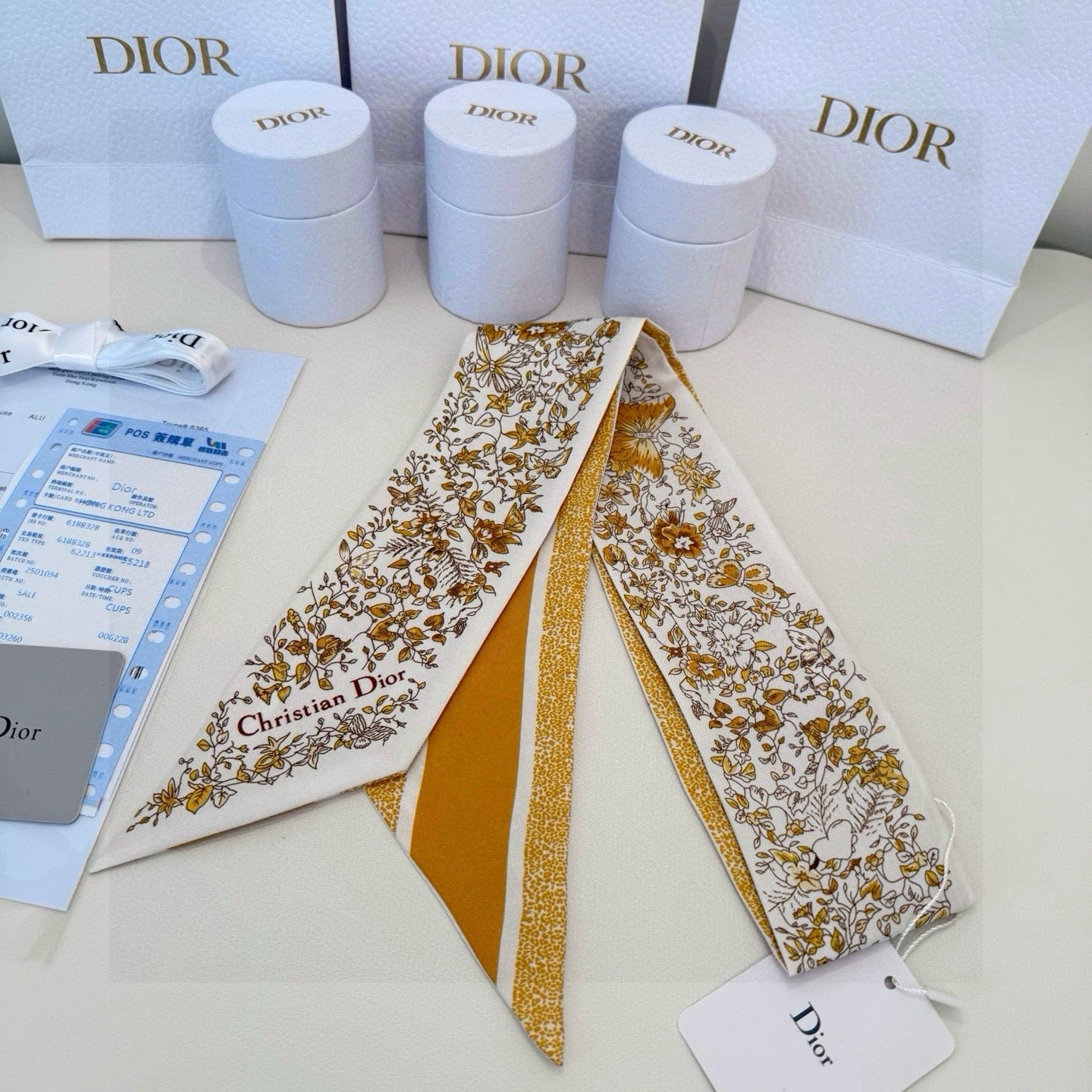 CD Twilly Mini Scarf 105cm Yellow Colorful Mulberry Silk 941921