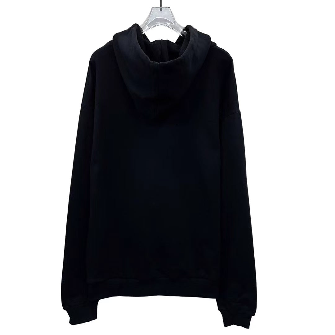 Celin Loose Hoodie Black Fleece White Logo