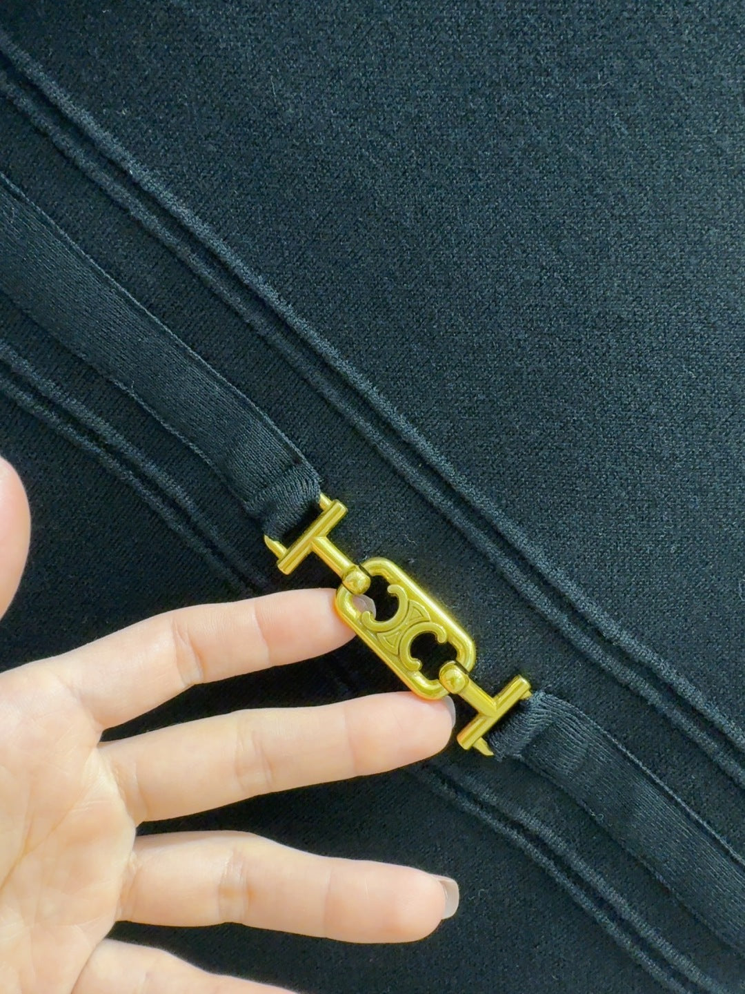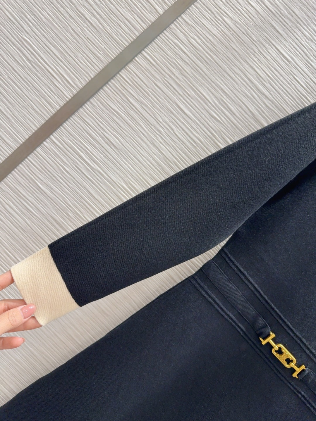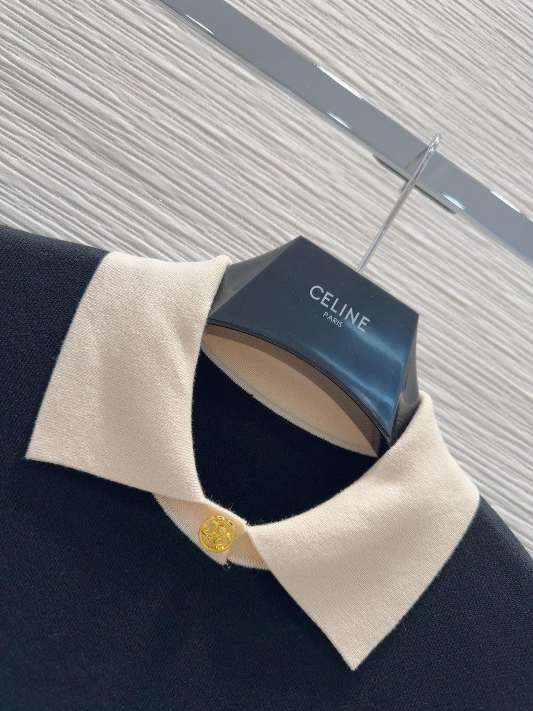 Celine 2025 A-line Dress Black mix White Tencel cotton