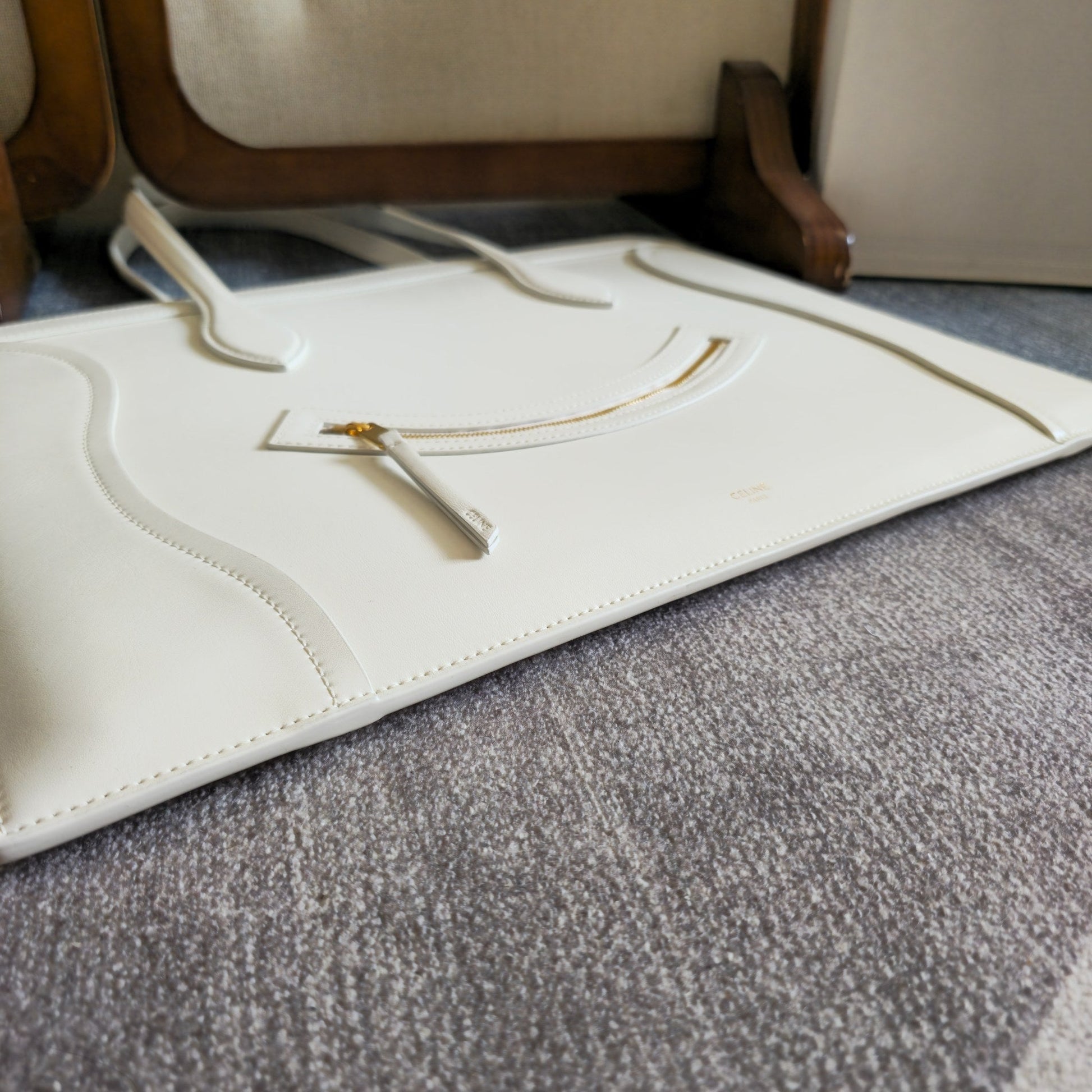 Celine 2026 Flat Cabas New Luggage Bag White Calfskin 276203