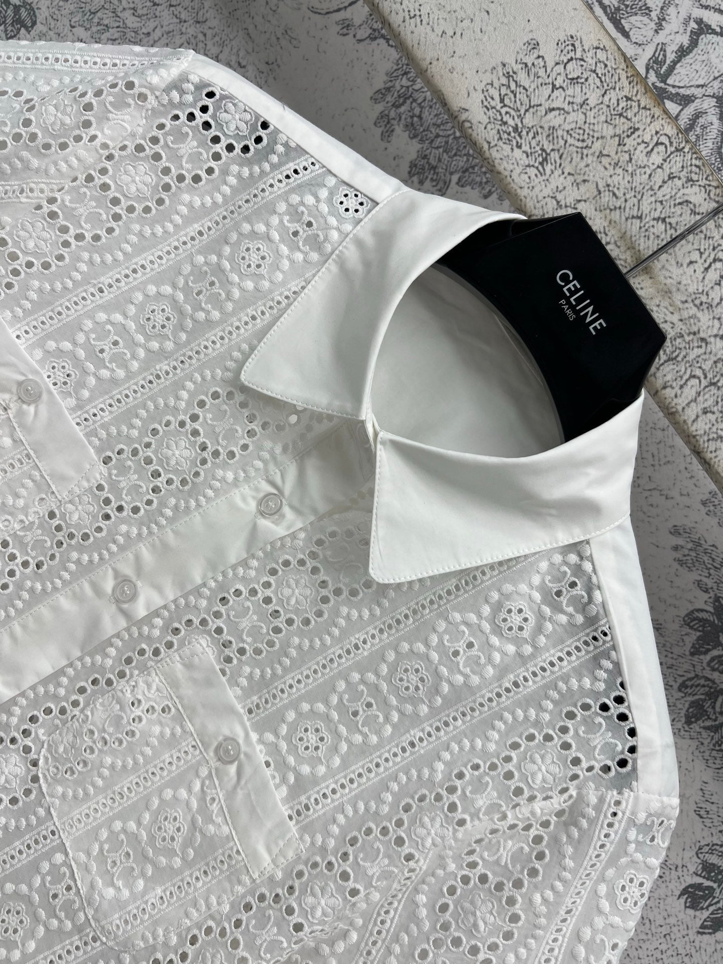 Celine 25 Lace Short Shirt White Cotton