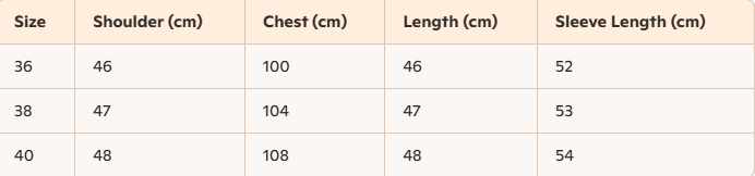- Size : 36,38,40