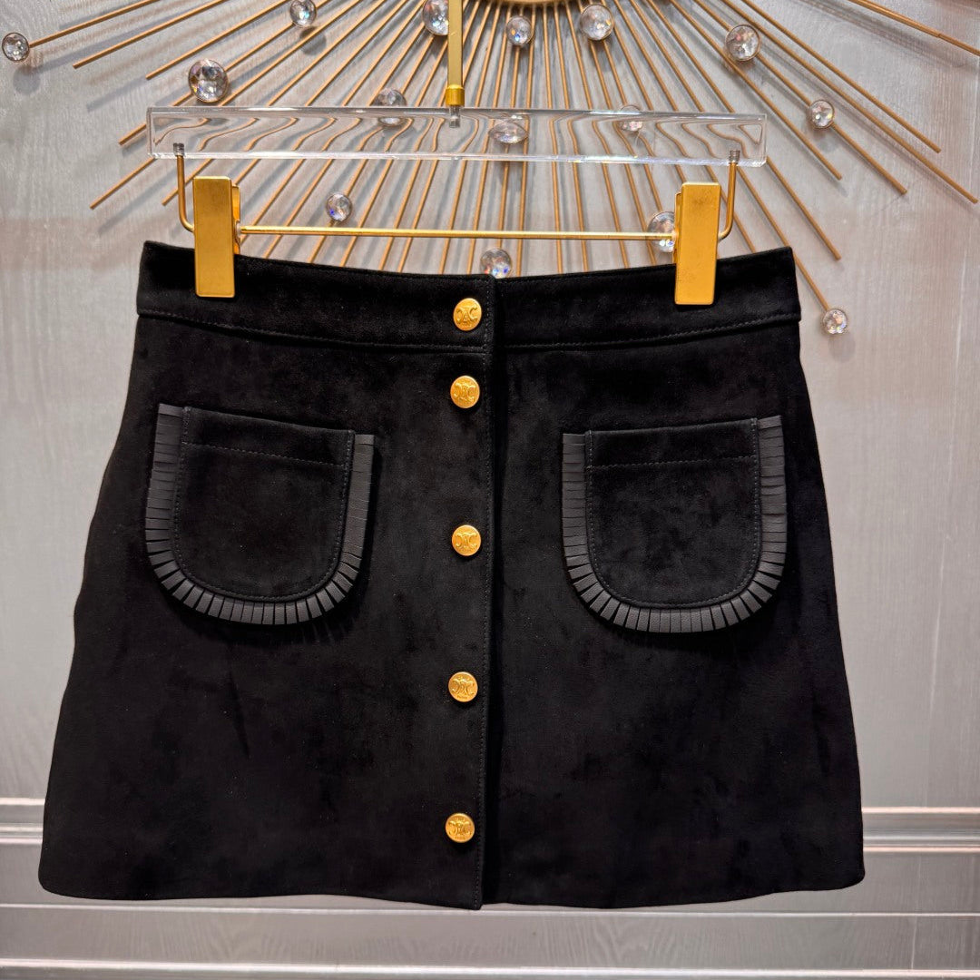 Celine 25 Skirt Black Gold Velvet