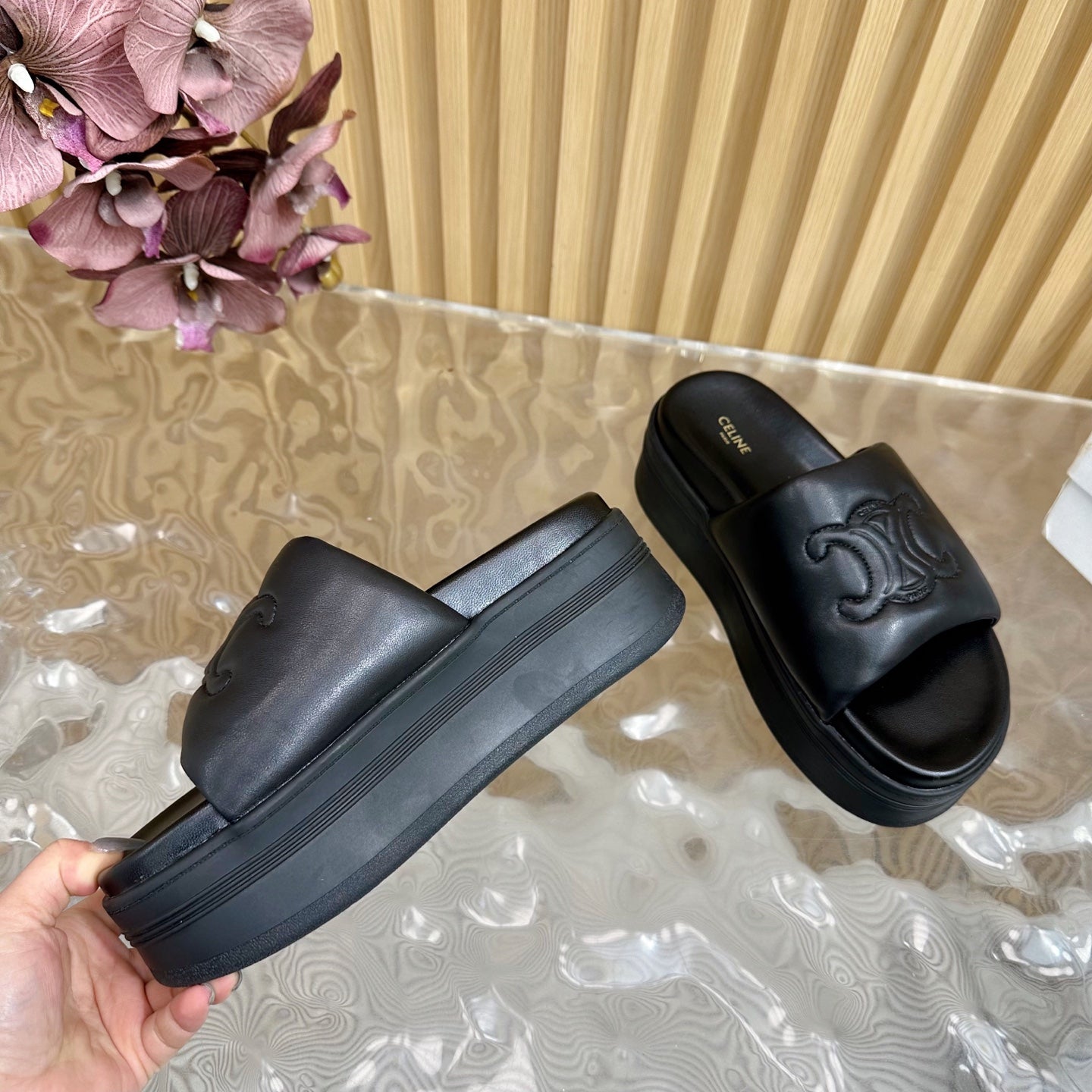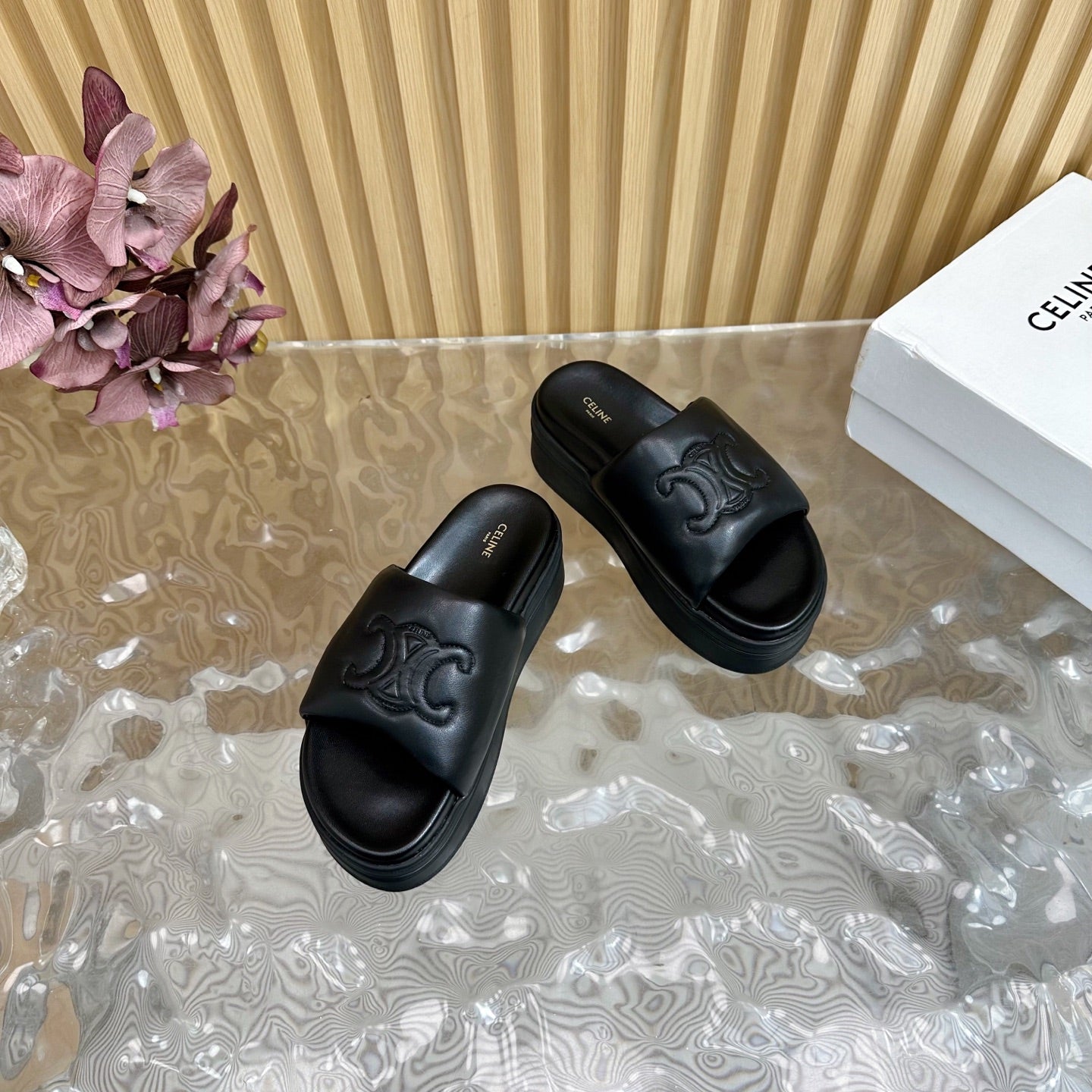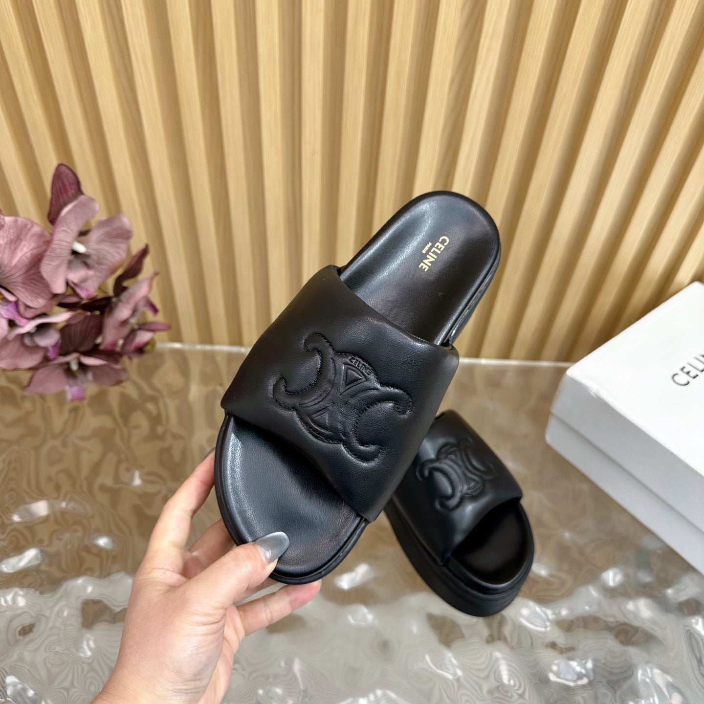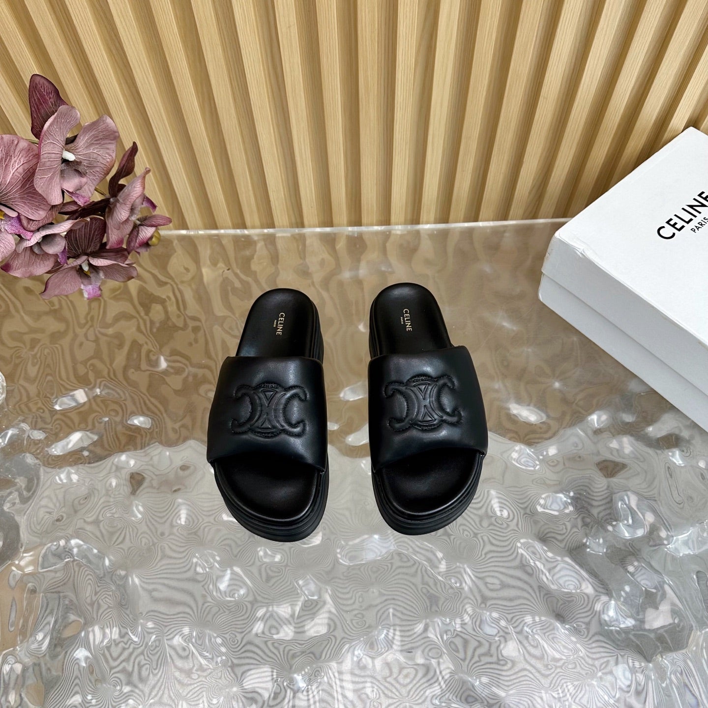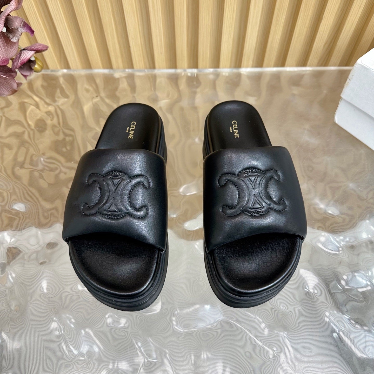 CELINE 25 Sline Sandal Black Sheepskin 285910