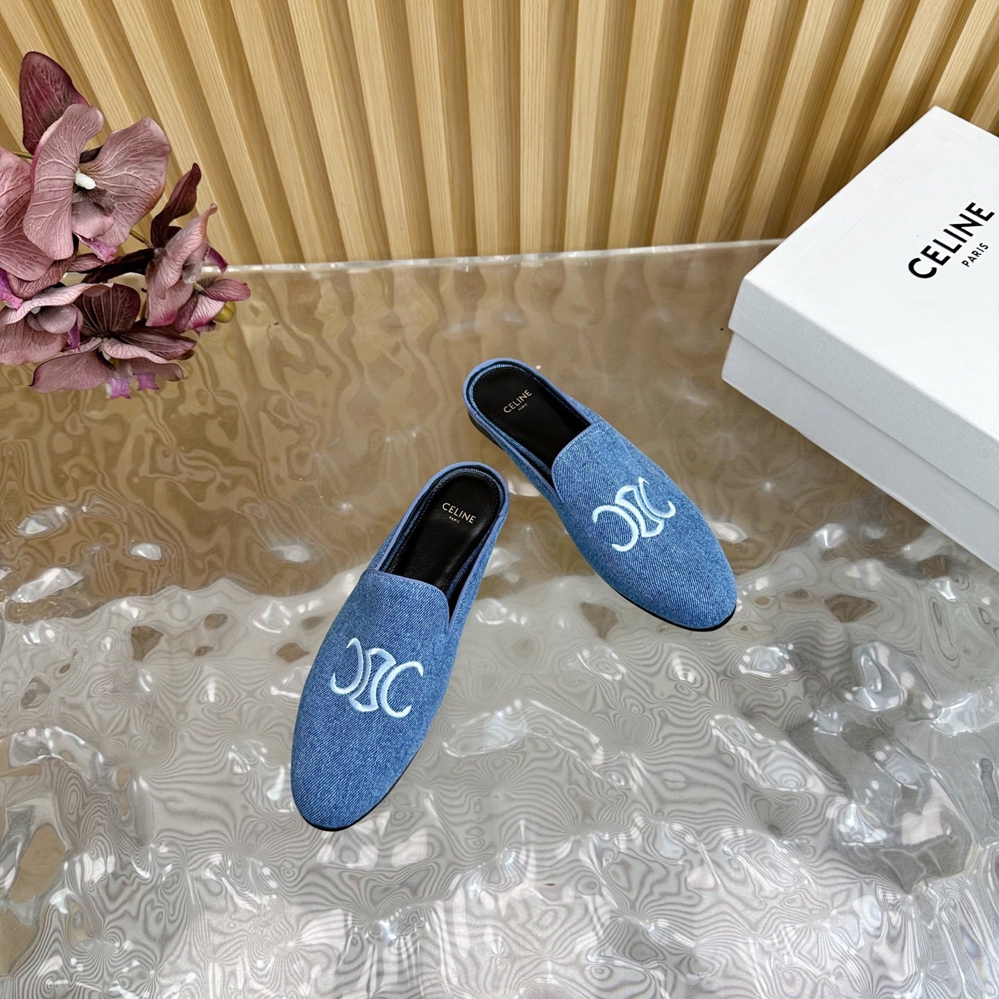 CELINE 25 Slippers Blue Denim 285915