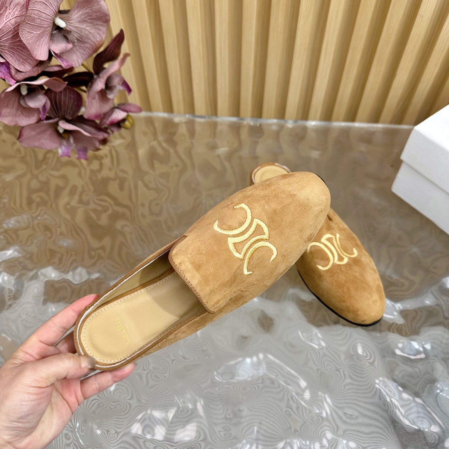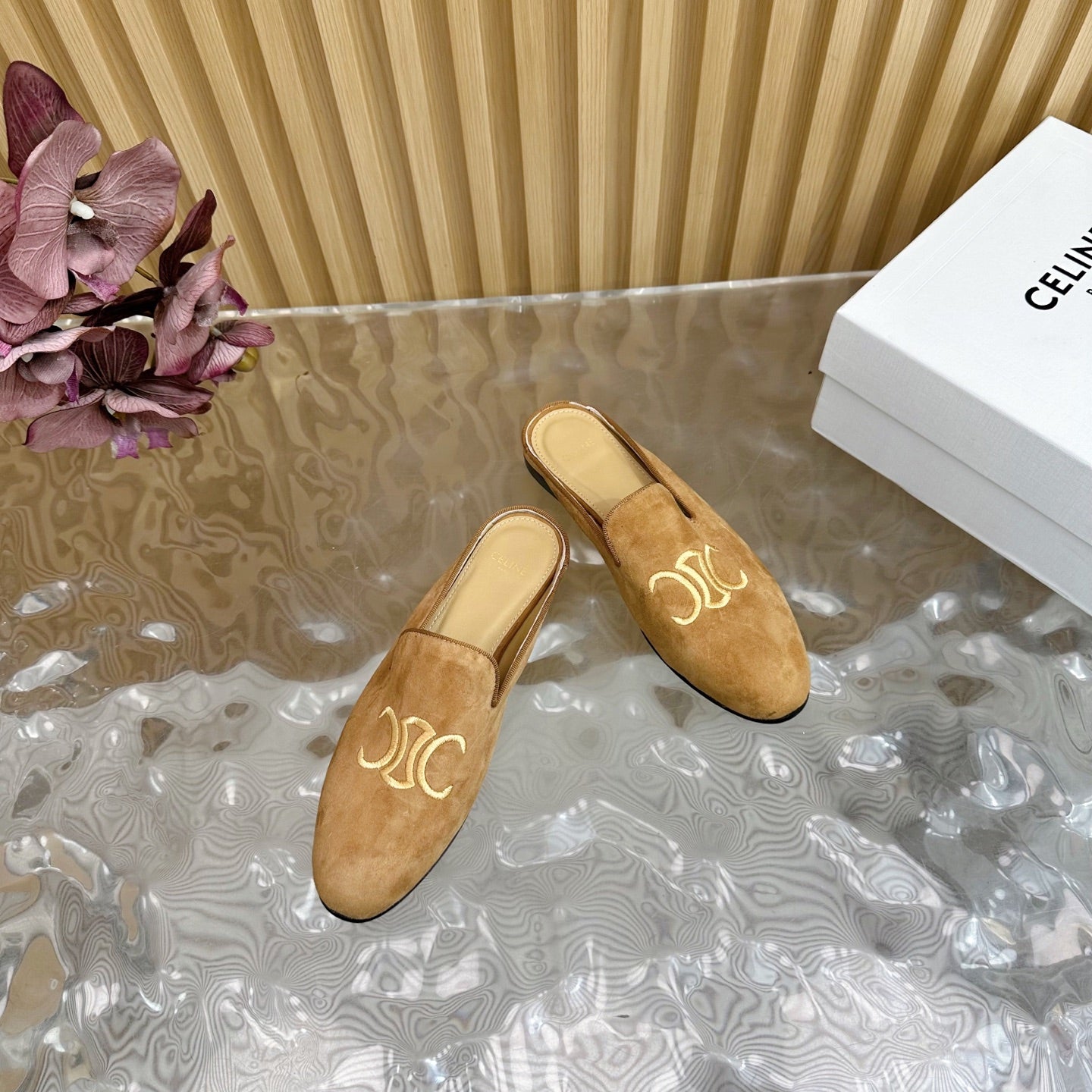 CELINE 25 Slippers Brown Suede 285916