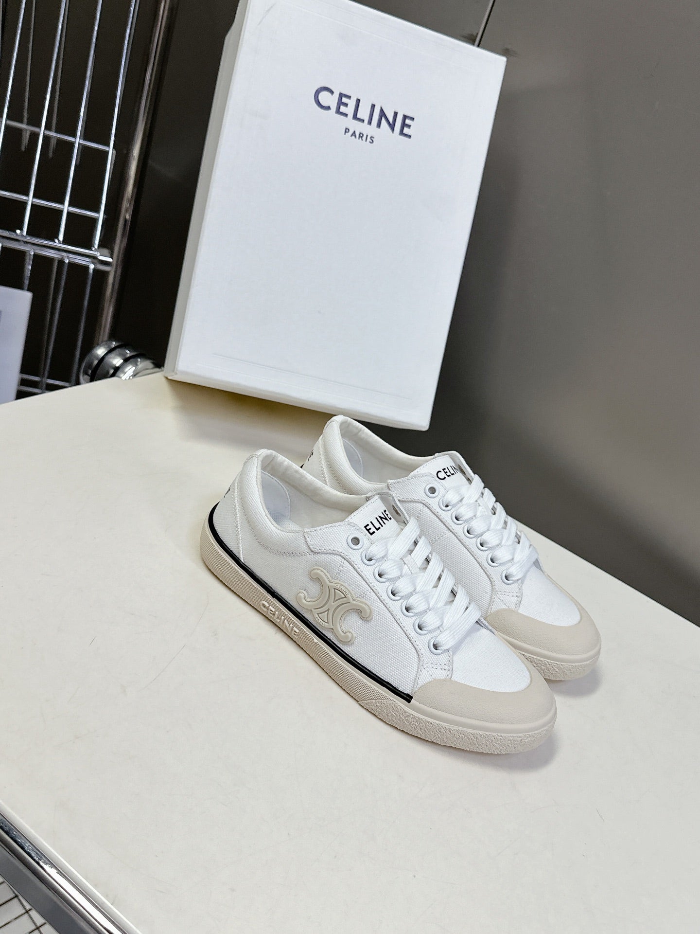 CELINE 25 Sneaker White Beige Canvas 285970