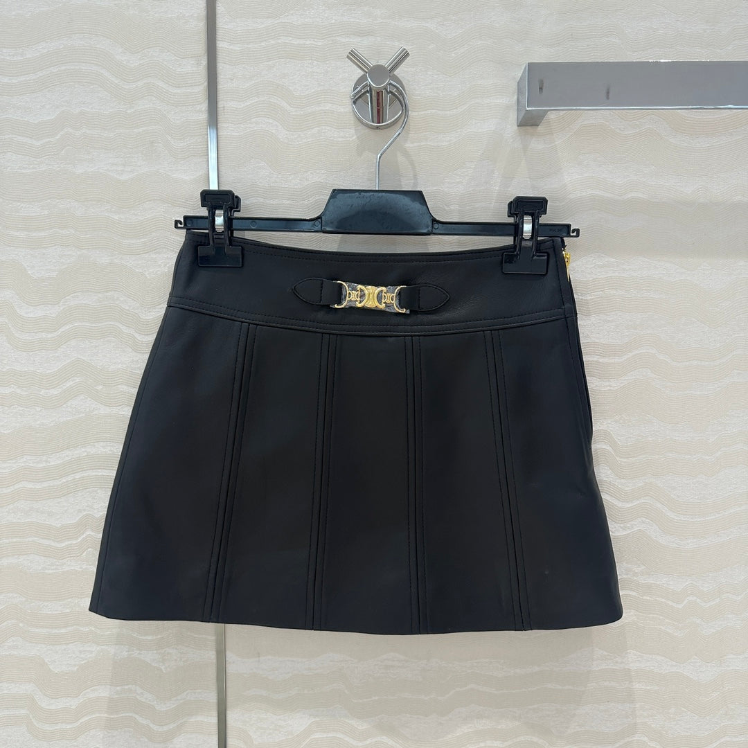 Celine Arc de Triomphe Metal Buckle skirt Black Lambskin