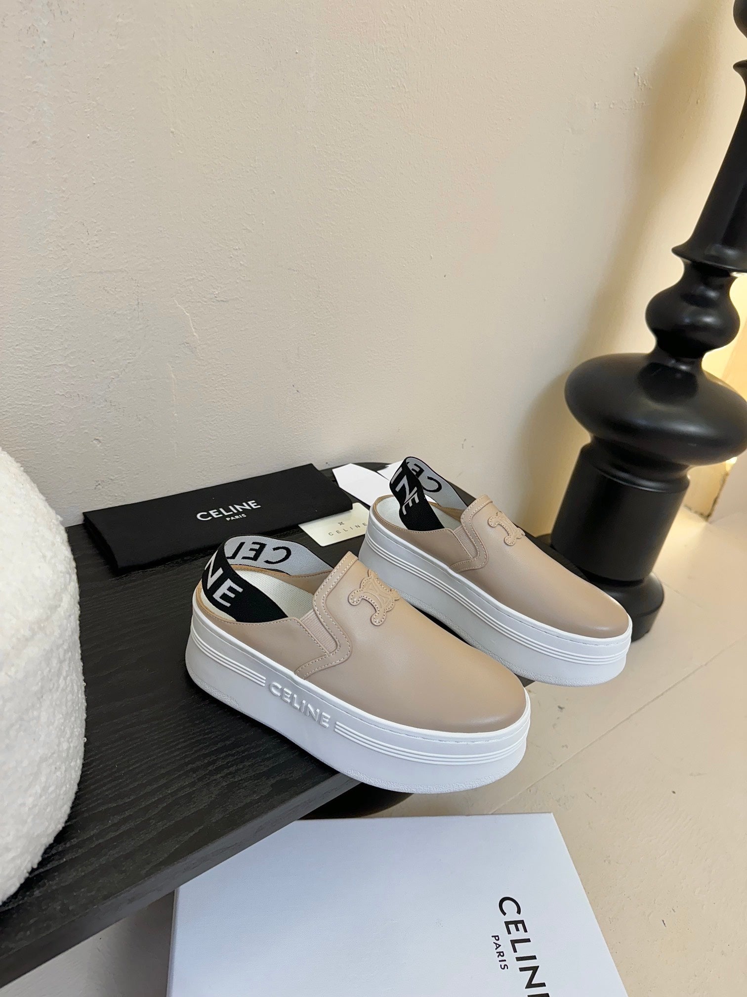 CELINE Block Wedge Mule Cream Calfskin 235719
