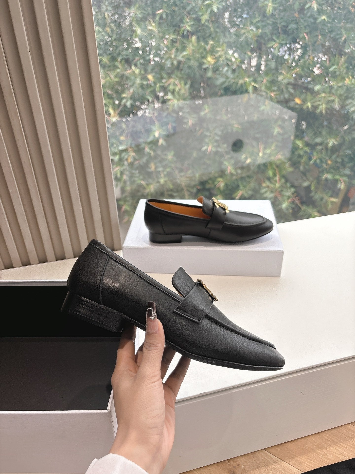 CELINE Buckle Triomphe Loafers Black Leather 285958