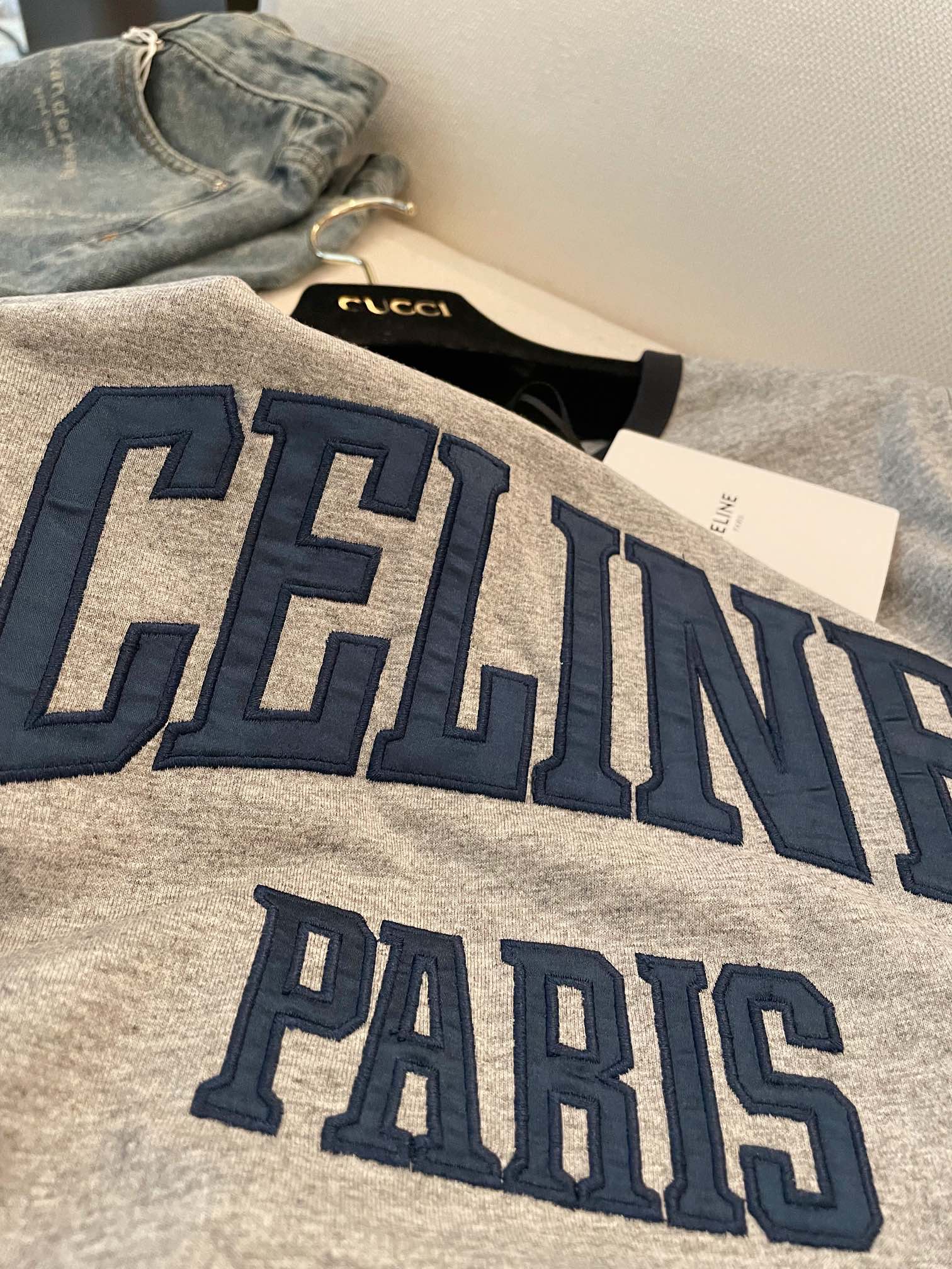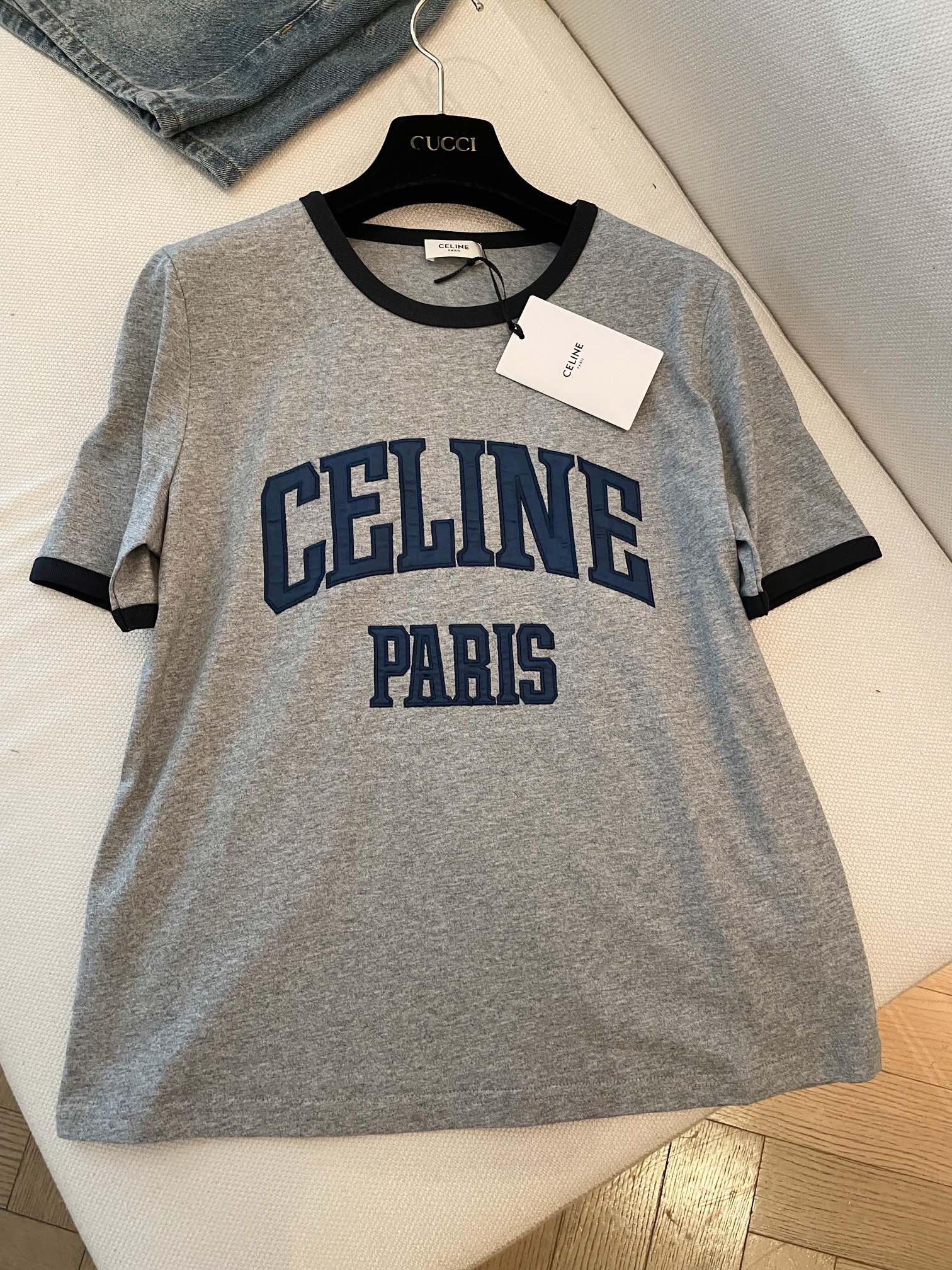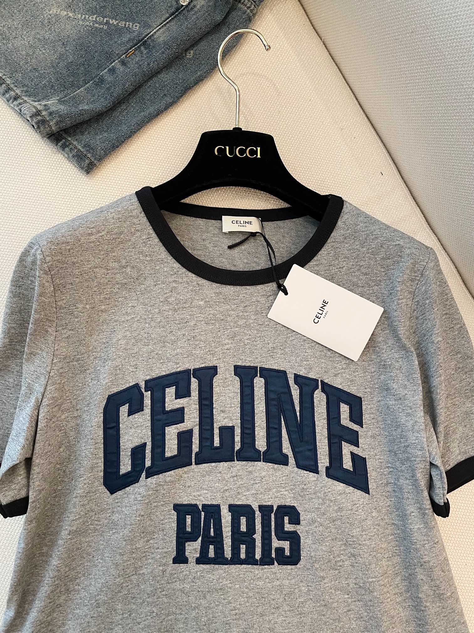 Celine "CELINE PARIS" T-shirt Gray Black Blue cotton