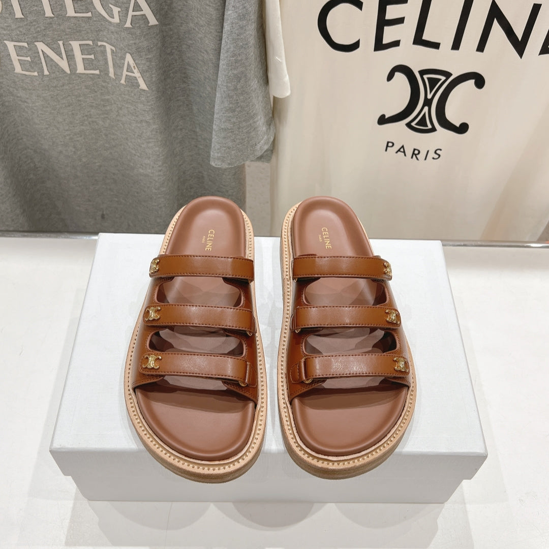CELINE Dad Sandal Mule Chocolate Cowhide 236754
