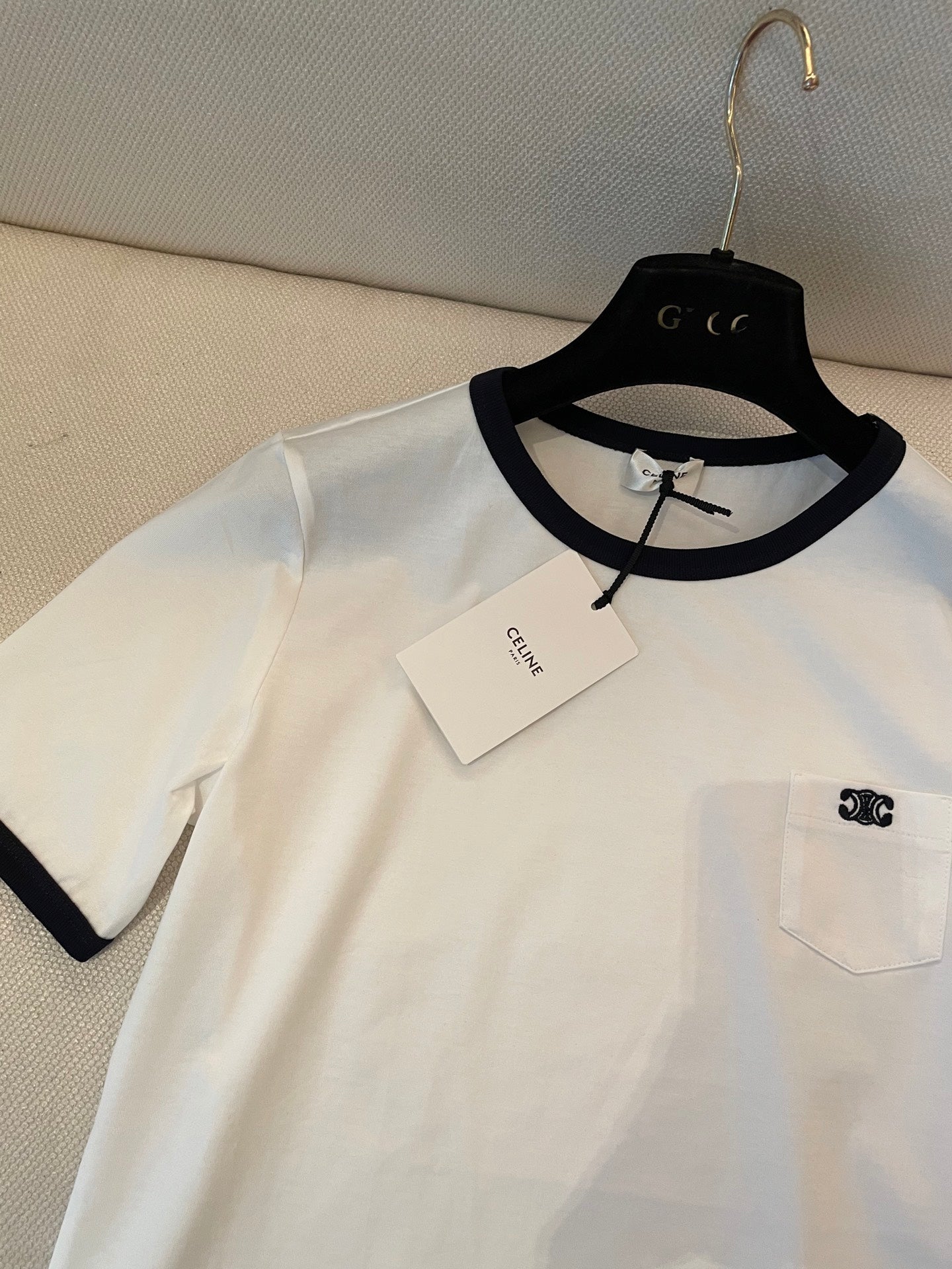 Celine Small Logo t-shirt White mix Black Cotton