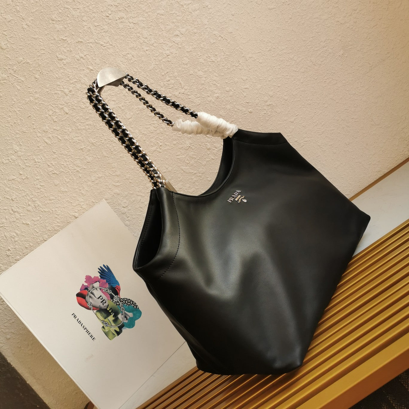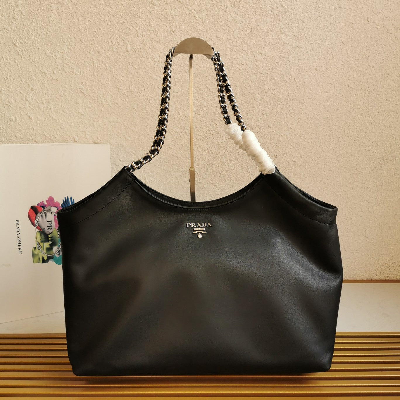 CHAIN TOTE 39 SOFT BLACK CALFSKIN SILVER HARDWARE