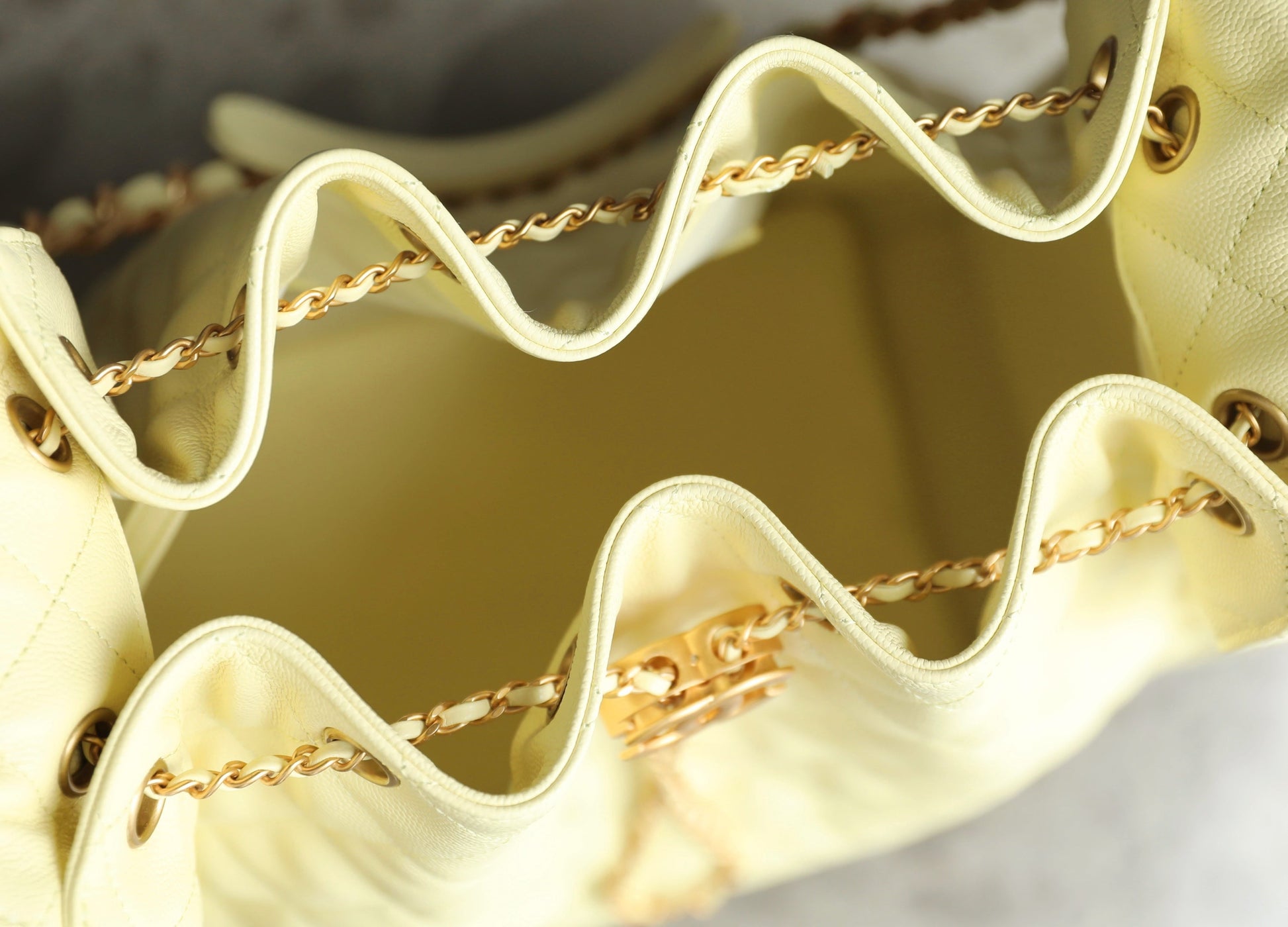 Chanel 2025 Hobo Bag 40cm Light Yellow Caviar Leather 344300