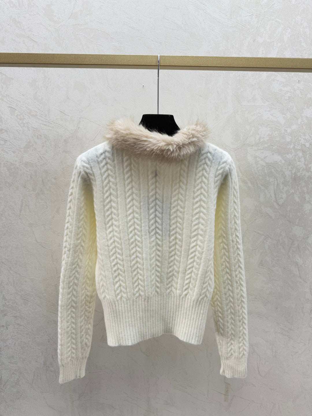 Chanel 2025 Hooded Feather-Embellished Knitted Long-Sleeve Cardigan Wool 716356
