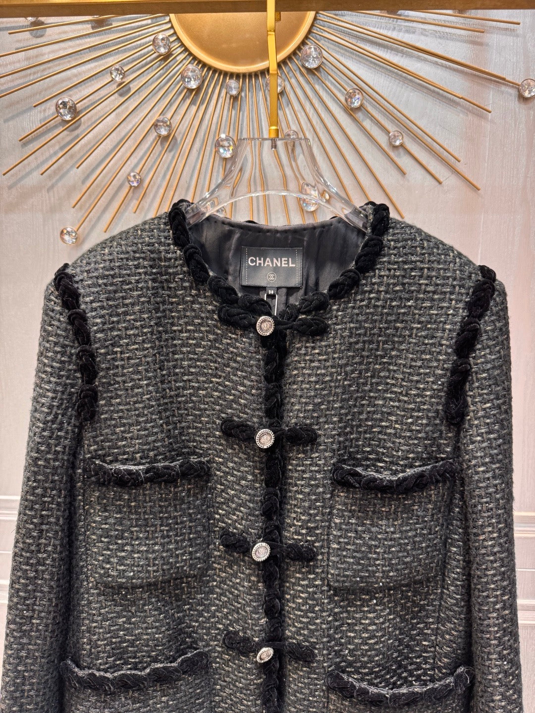 Chanel 2025 Jacket With Four Pockets And Velvet Trimblack Tweed