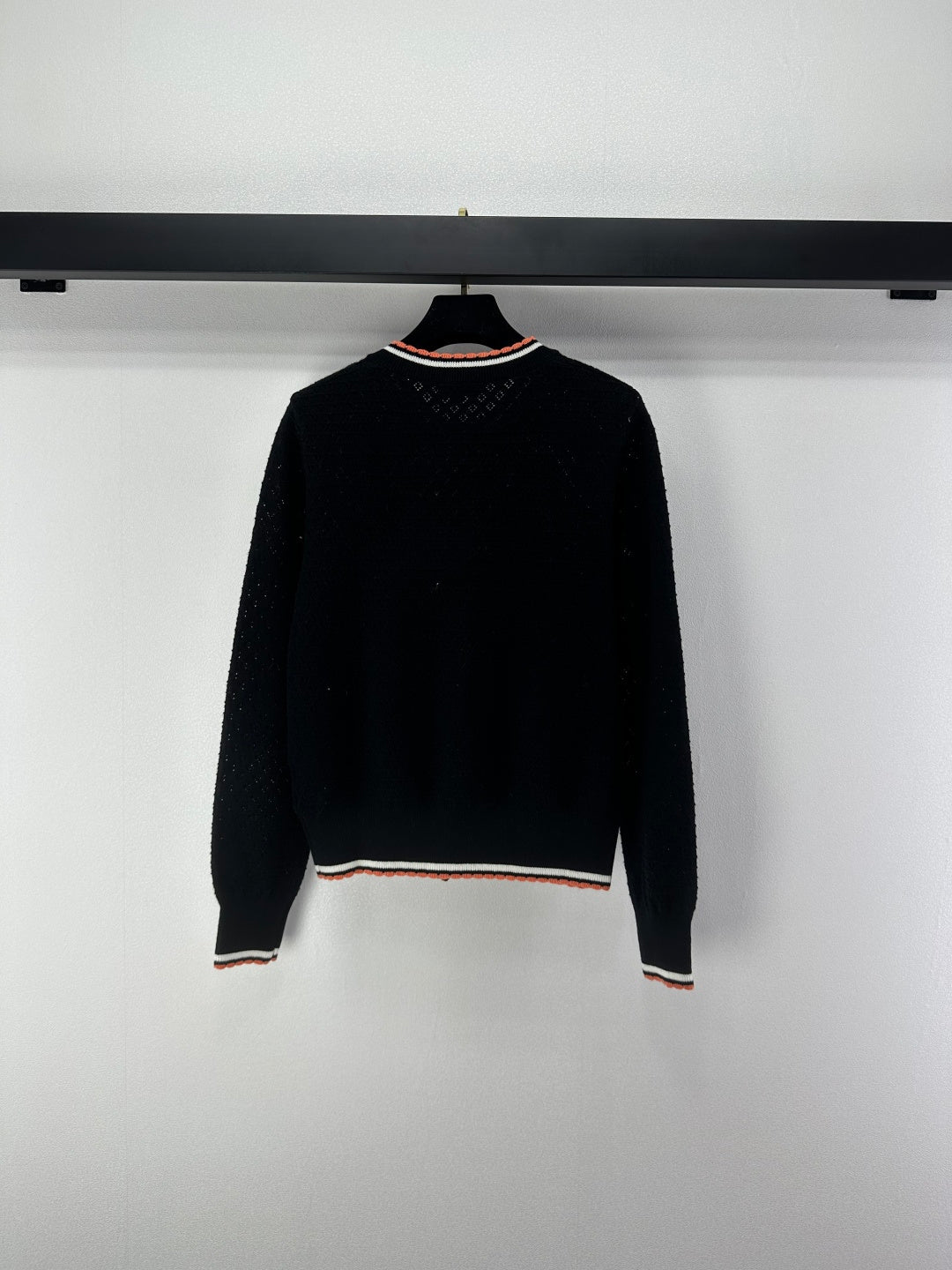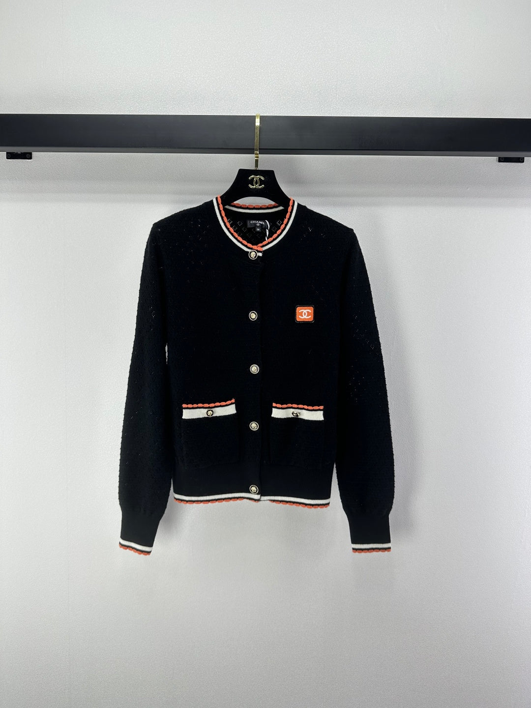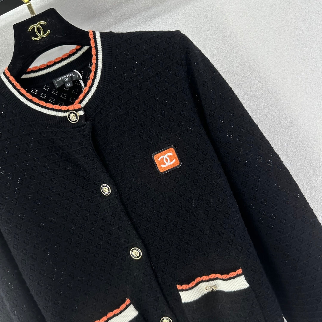 Chanel 2025 Long-sleeved Cardigan Cream and Black Cotton Cashmere 325737