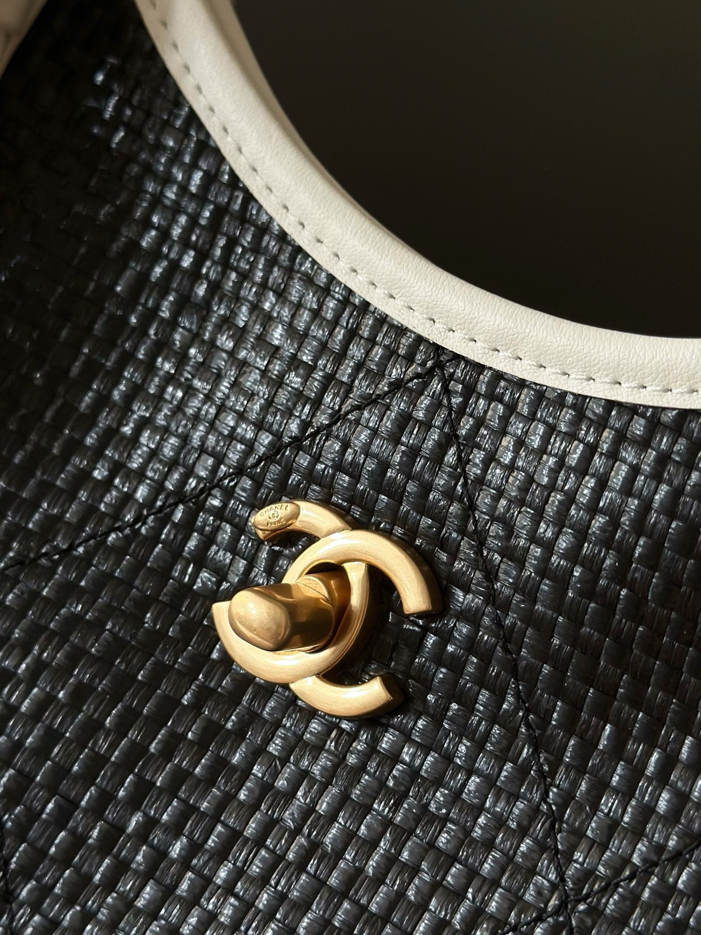 Chanel 2025 Maxi Hobo Bag 31cm Black mix White Straw Leather 320857