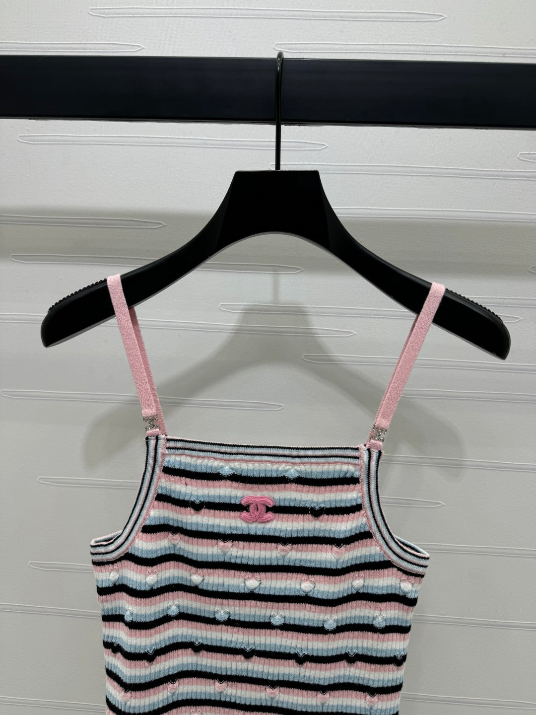Chanel 25 Pink Black Striped Knit Tank Top